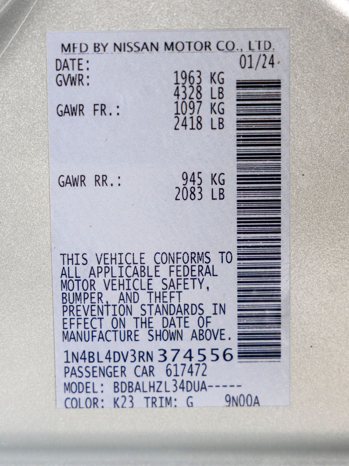 - Vehicle Name: Nissan Altima