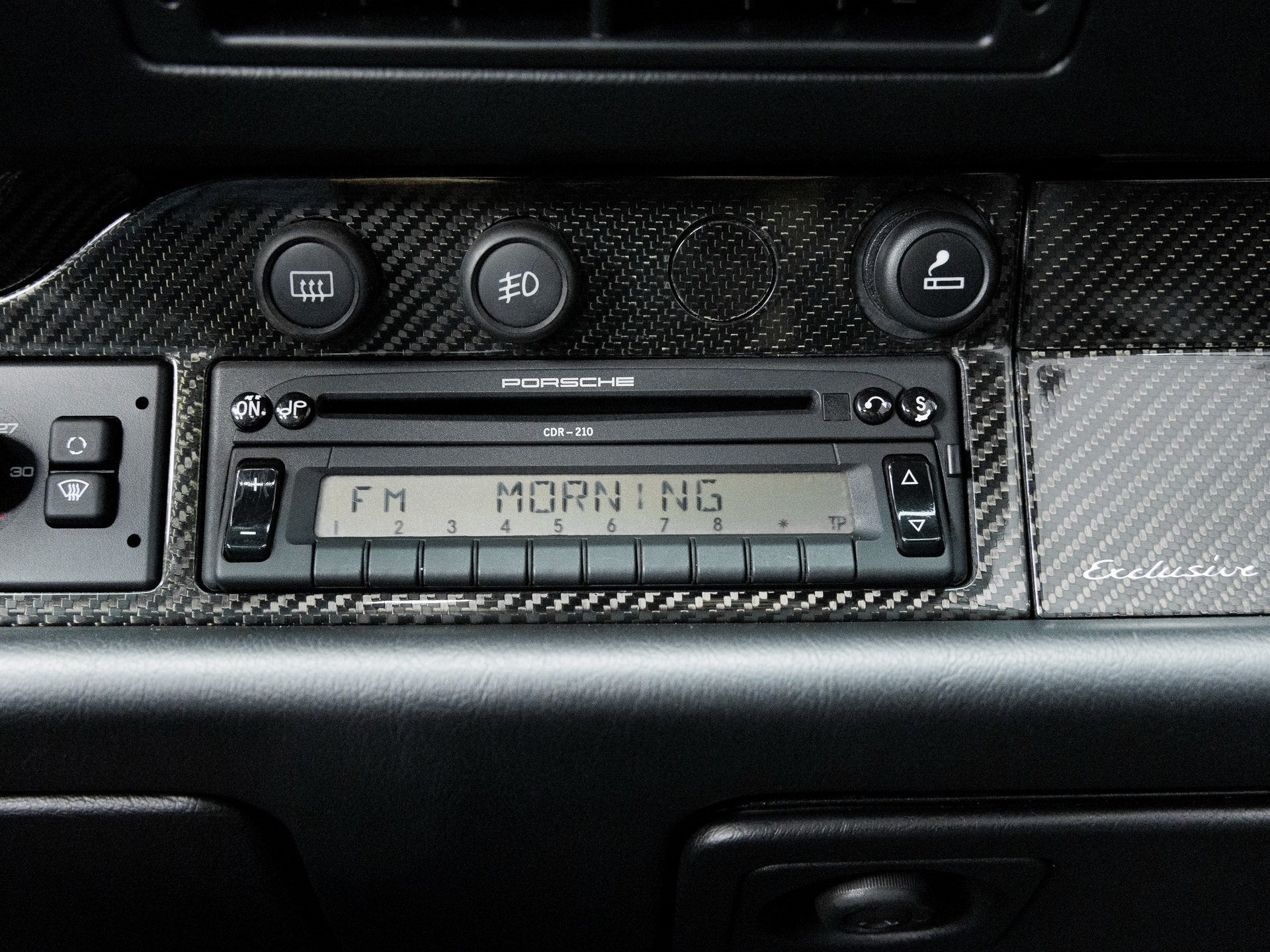 Step inside and experience a cabin that perfectly blends motorsport inspiration with bespoke craftsmanship. The Black interior features Partial Leather Interior Trim with Leather Seats in Black, complemented by Seat Covers in Draped Leather for an elevated tactile experience. Exclusive details include Headrests with Embossed Porsche Crest, Front Floor Mats Surrounded in Leather with Porsche Logo, and a striking suite of carbon accents. These include the Carbon Instrument Cluster and Panel, Carbon Door Panels, and a beautifully finished Airbag Steering Wheel in Carbon/Leather. Additional bespoke touches such as the Aluminum/Carbon/Leather Shift Knob, Matching Handbrake Lever, and Aluminum-Design Instrument Dials with Chrome Rings reflect Porsche Exclusive craftsmanship at its finest. The Sound Package with Amplifier and Interior Monitoring round out the cabin with enhanced audio quality and security.