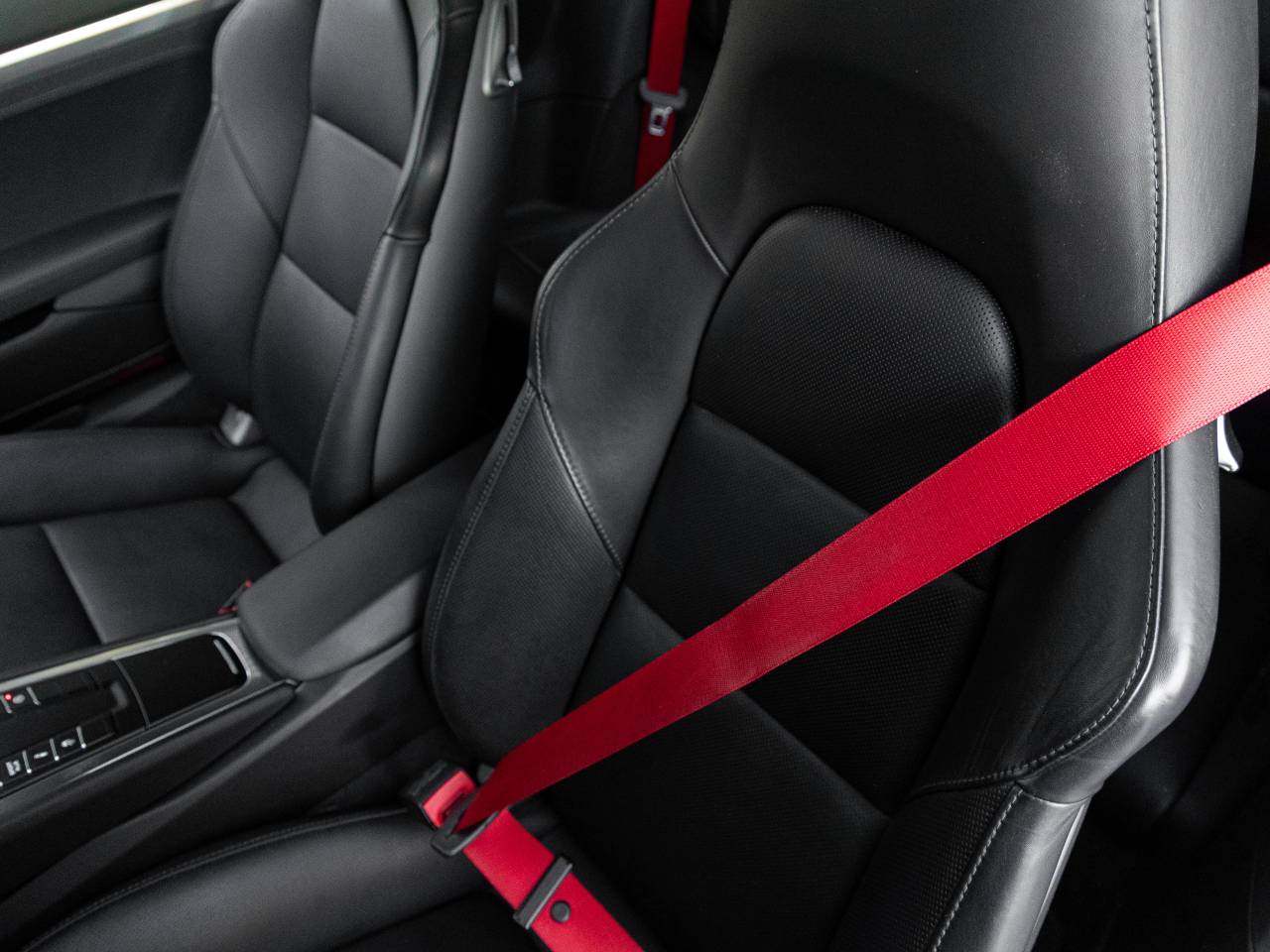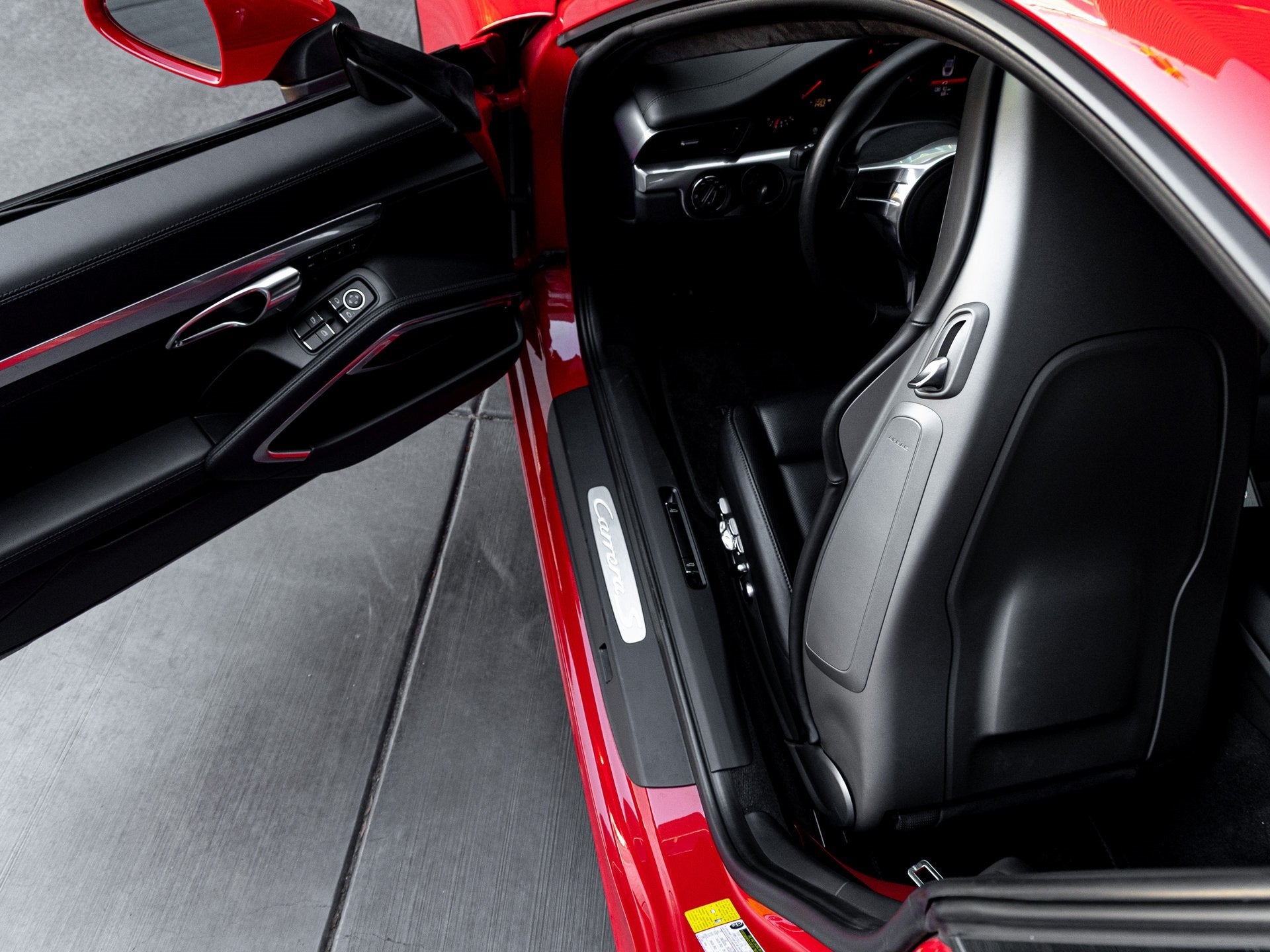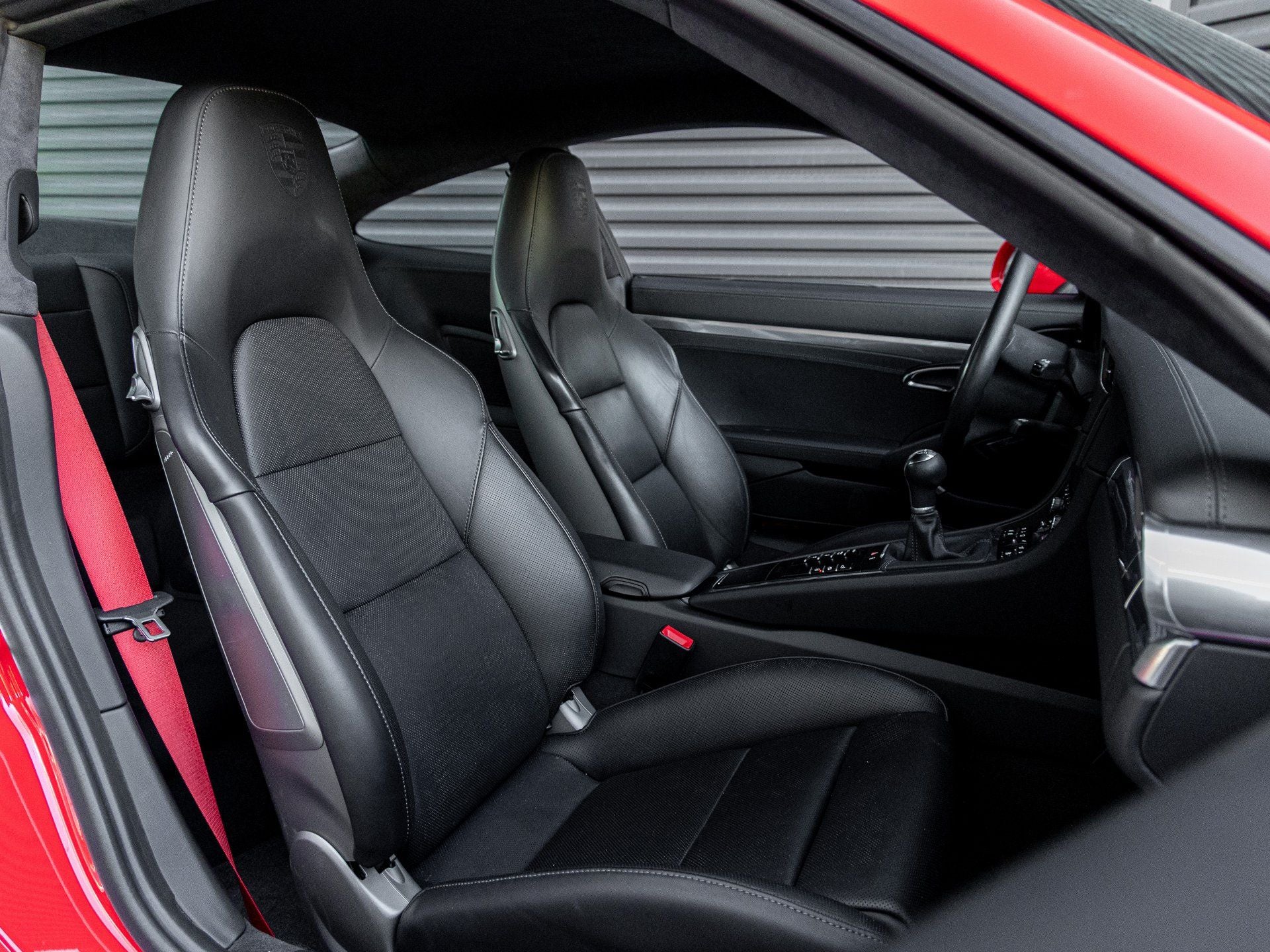 Step inside and the Black leather interior greets you, exuding an air of luxury that only Porsche can deliver. The Adaptive Sport Seats Plus (18-way) provide exceptional support and personalization for spirited driving, while seat heating and ventilation ensure comfort in every season. Guards Red seat belts add a striking motorsport-inspired accent throughout the cabin. The SportDesign steering wheel enhances driver engagement, while the Interior Lighting Package for the rear compartment elevates the cabin ambiance. Porsche Crests on the headrests further highlight the bespoke craftsmanship of this iconic sports car.