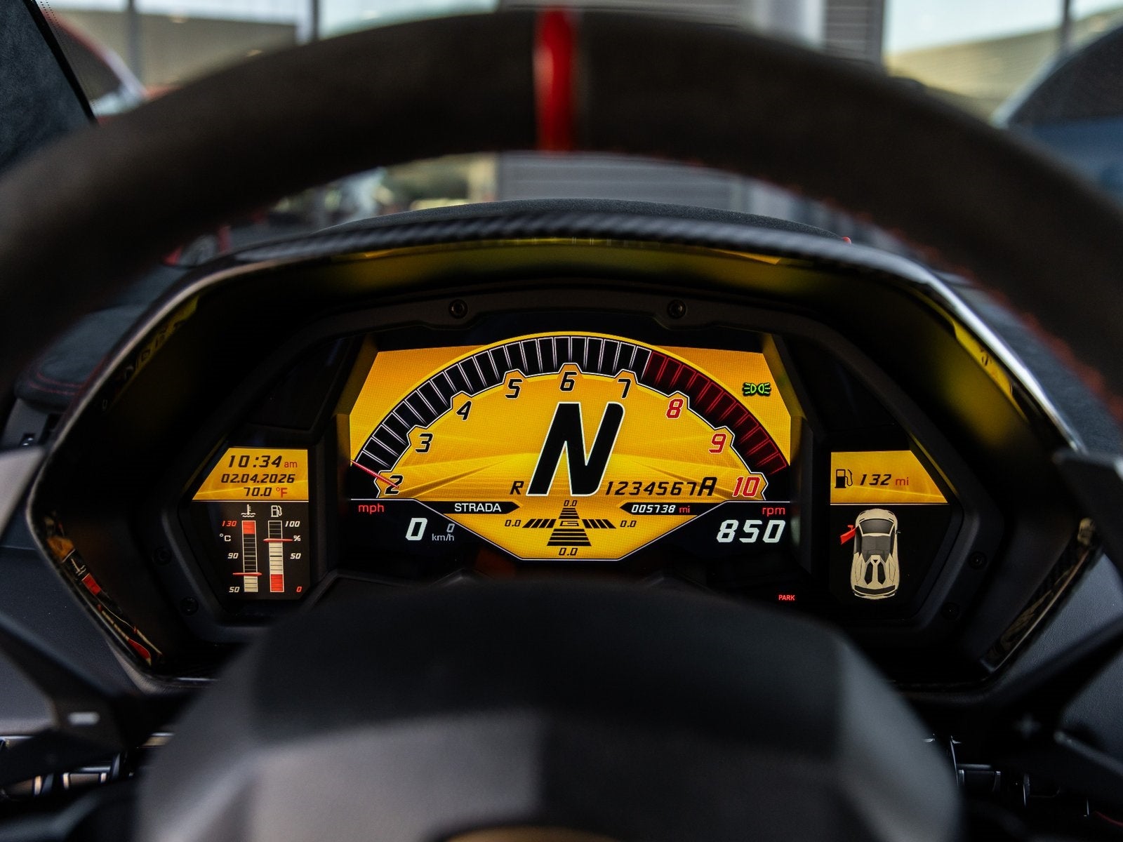 Fire Extinguisher: A track-minded feature that reinforces the Aventador SV Roadsters serious performance intent.