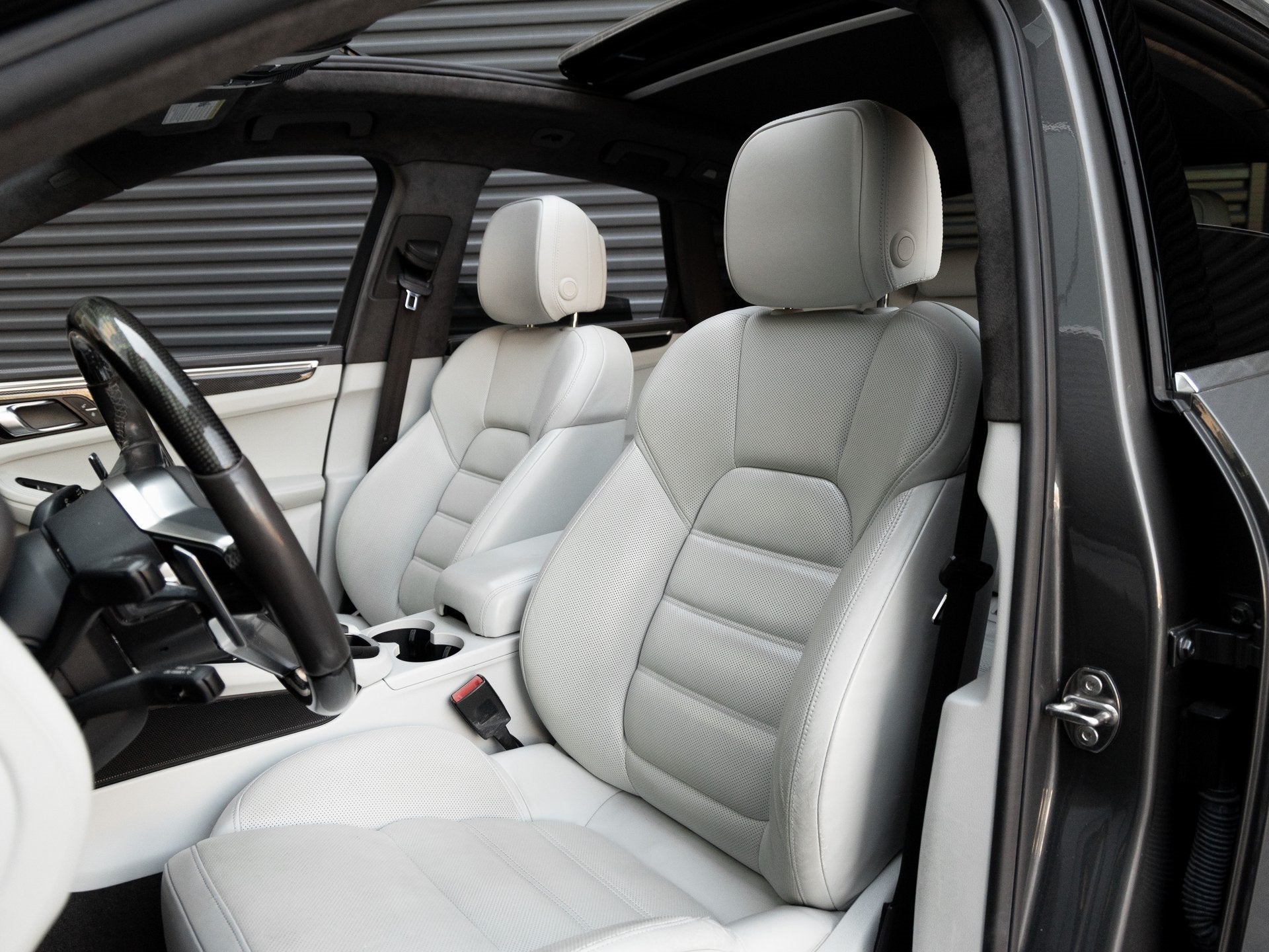 Step inside and the Agate Grey / Pebble Grey interior greets you, exuding an air of luxury that only Porsche can deliver. The Carbon Fiber Interior Package and Heated Multifunction Steering Wheel in Carbon Fiber create a cockpit that blends performance-focused design with refined craftsmanship. Seat Ventilation for the front seats enhances comfort during spirited drives, while illuminated Carbon Fiber Door-Sill Guards welcome you into a cabin that perfectly balances sportiness and sophistication.