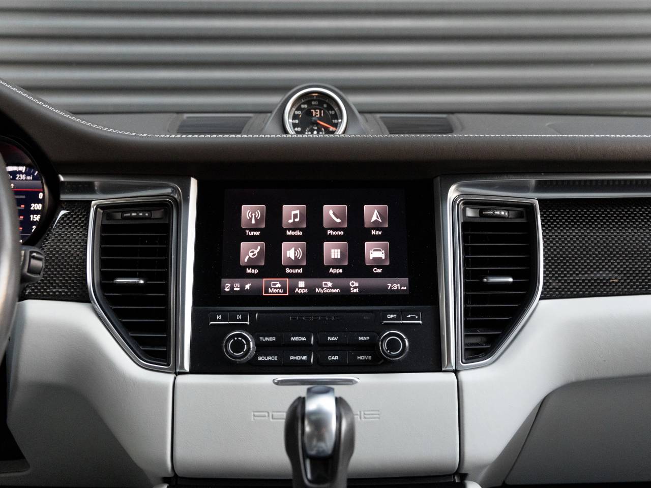 • Radio: Porsche Communication Management (PCM) -inc: CD/DVD drive, 11 GB internal jukebox storage, 2 USB slots, 2 SD card slots, BOSE surround sound system, 14 speakers including subwoofer, 545 watts, Bluetooth® hands-free mobile phone connection, navigation module, high-resolution 7-inch touchscreen display, SiriusXM satellite radio, HD Radio and universal audio interface (Aux-In, USB, iPod)