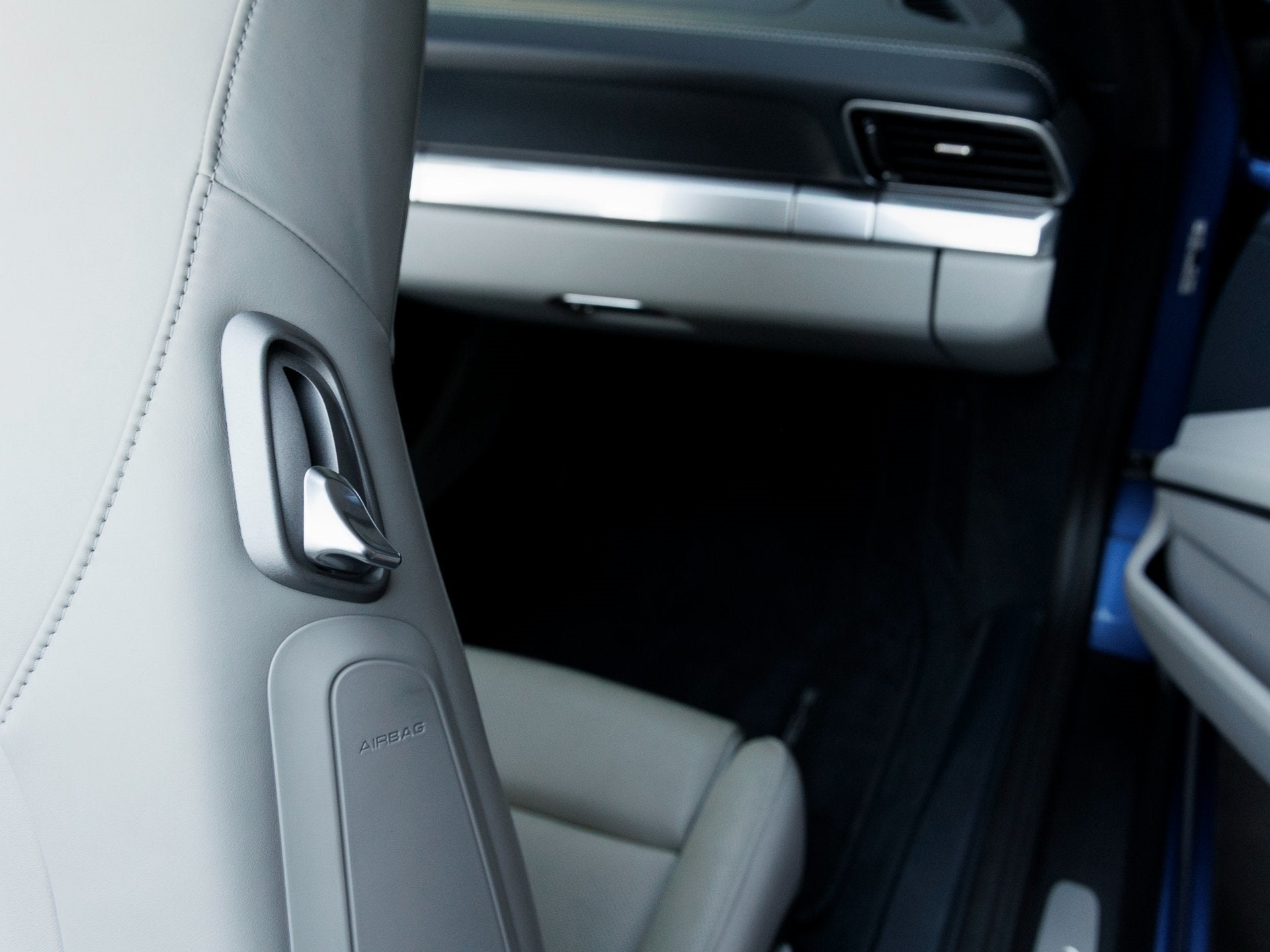 Step inside and the Graphite Blue/Chalk Two-Tone Leather Interior envelops you in refined luxury. The cabin is elevated with features like the Heated Multifunction Steering Wheel, Seat Heating and Ventilation (Front), and Porsche Crest on Headrests. Additional appointments such as the Light Design Package, Luggage Net in Passenger Footwell, and Sport Chrono Clock Dial in Guards Red enrich the overall driving ambiance.