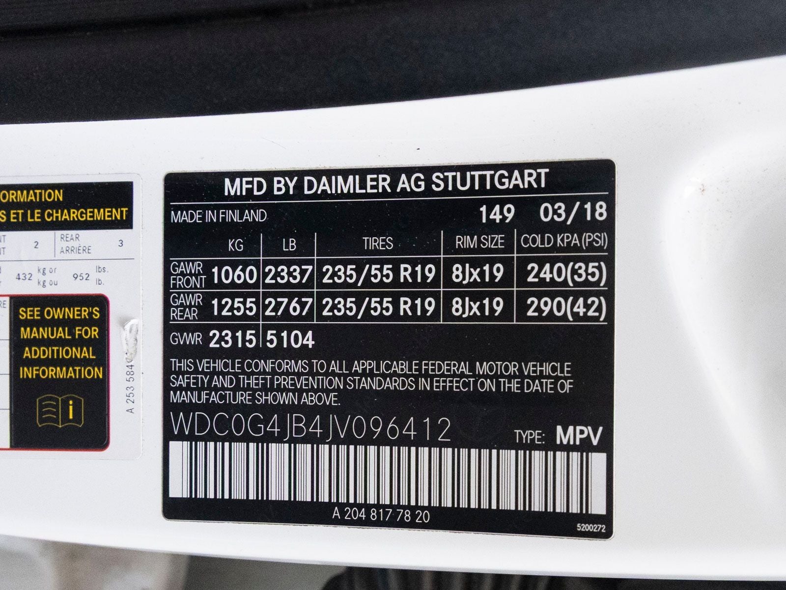 - Front Tire Size: P235/55HR19