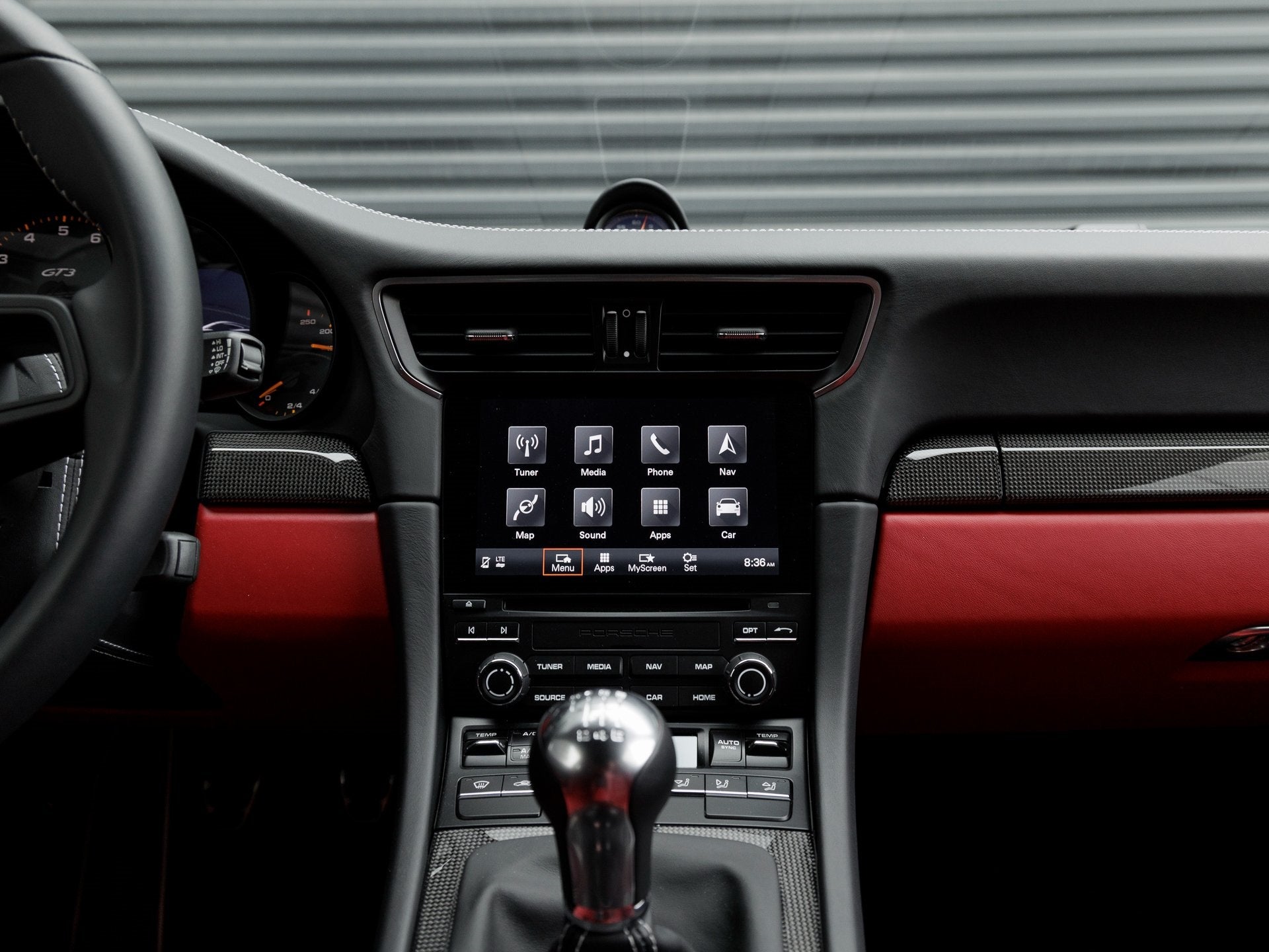 Step inside and the Black/Carrera Red leather interior delivers a dramatic visual impact. Highlights include Full Bucket Seats, Extended Deviated Stitching Interior Package, Sun Visors in Leather, Dashboard Trim Package in Leather, and Carbon Fiber Interior Trim elements. Door Sill Guards in Carbon Fiber, Illuminated and a Steering Column Casing in Leather with Deviated Stitching speak to Porsches meticulous attention to detail. BOSE Surround Sound System ensures an immersive audio experience, and the Custom Tailoring Option showcases Porsches willingness to fulfill unique desires.