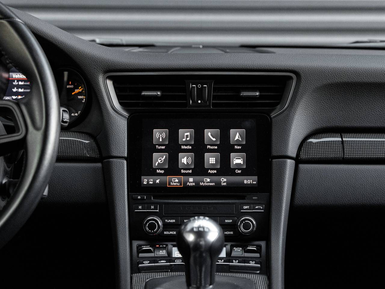 - Radio: Porsche Communication Management (PCM) -inc: online navigation module, mobile phone preparation, audio interfaces, voice control system, Connect Plus (online navigation, telephone module, wireless internet access and voice control system), Porsche Car Connect (car finder, remote vehicle status, remote services, Porsche Vehicle Tracking System (PVTS)), sound package plus sound system featuring 8 speakers, 150 watt total output w/integral amplifier and digital signal processing