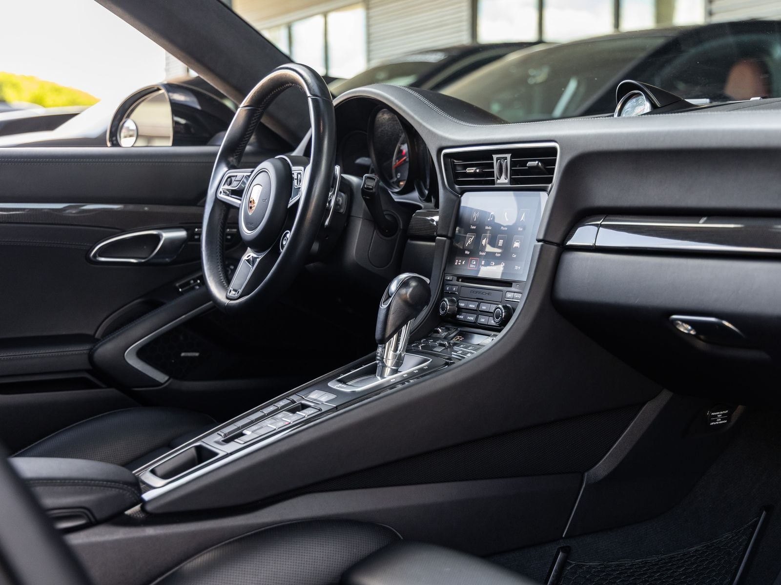 Step inside and the Black Leather Interior welcomes you with a refined and driver-focused environment. Premium materials and thoughtful details such as the Porsche Crest on Headrests, Carbon Fiber Illuminated Door Sill Guards, and Heated Multifunction Steering Wheel elevate the cabin experience. Seat Heating and Ventilation, along with the Light Design Package and Rear Footwell Lighting, create a able and luxurious atmosphere for every journey.