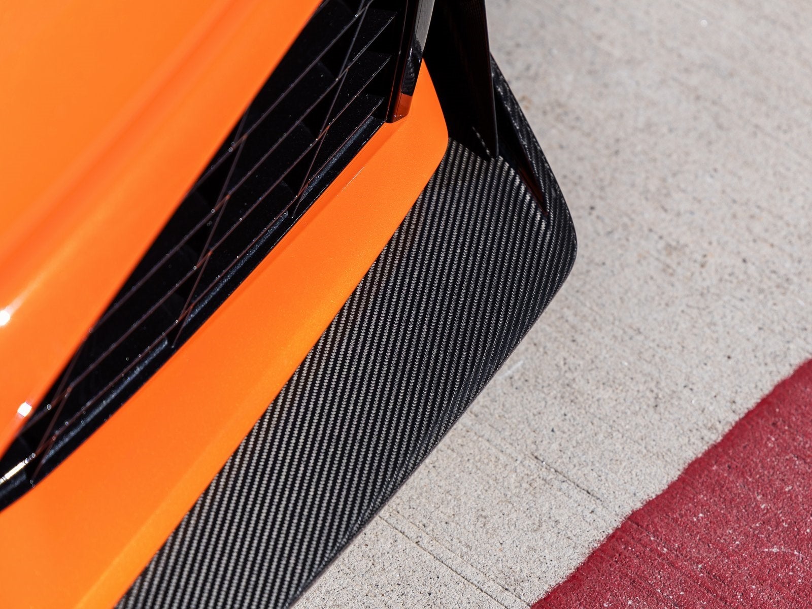 - Vents, exterior, carbon flash (Front fender vent and top of rear fender intake grille are visible carbon fiber.)