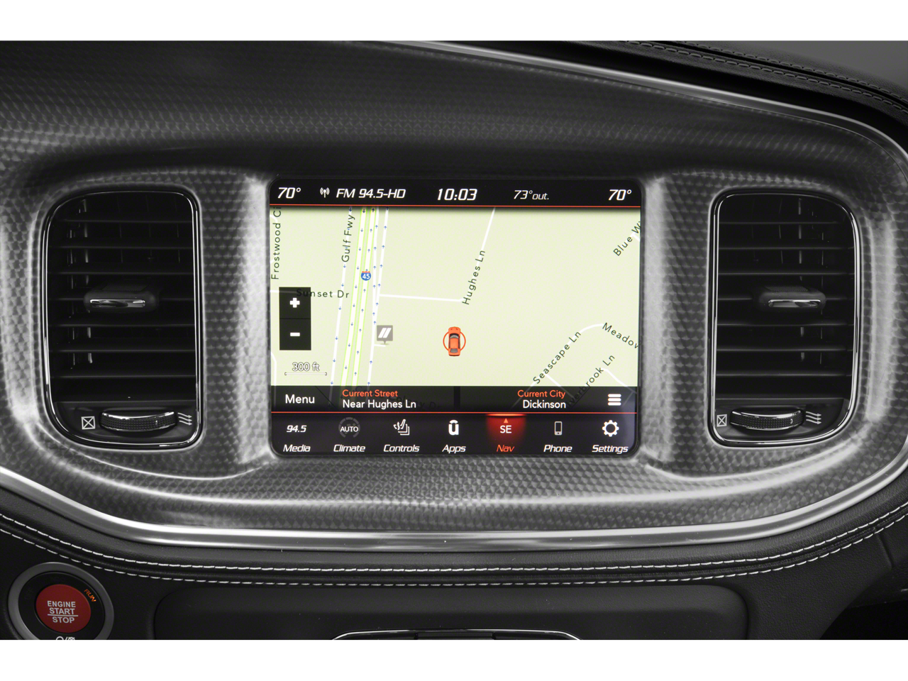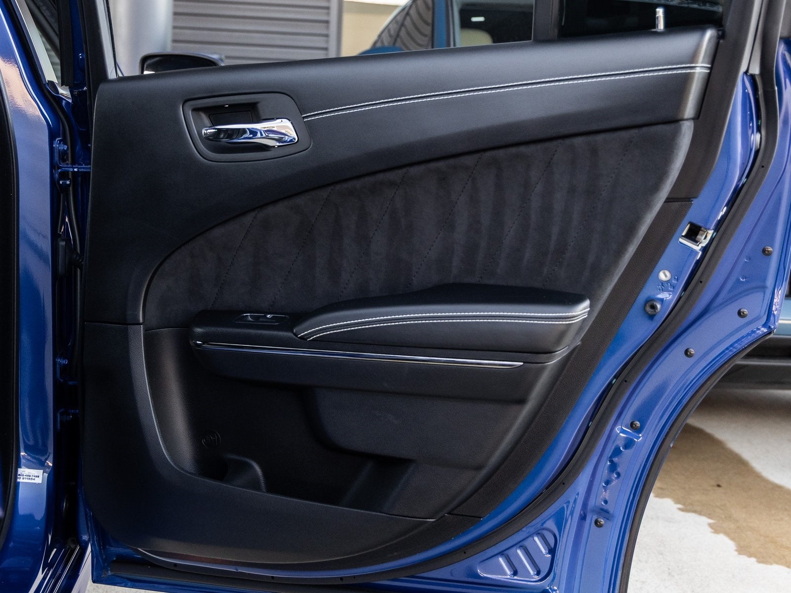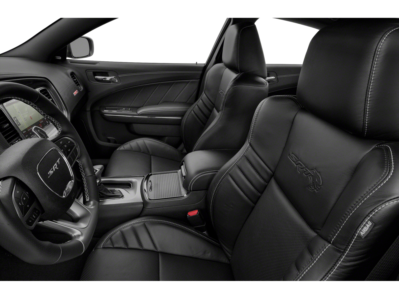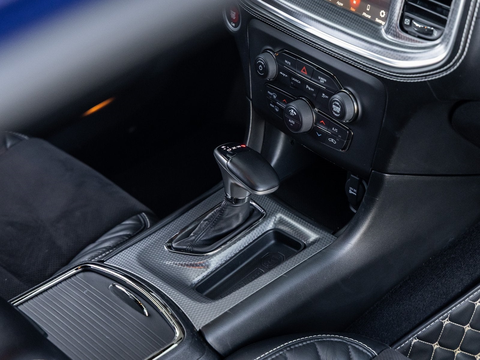 Step inside and the Black Alcantara / Laguna interior surrounds you with comfort and purpose-built luxury. Heated and ventilated front seats, heated second-row seats, and a premium-stitched dash panel elevate daily driving, while SRT Hellcat interior badging and dark engine-turned aluminum accents reinforce its performance-driven character. The Alcantara-wrapped steering wheel, suede door trim panels, and memory settings for the driver seat and mirrors ensure both control and convenience at every turn.