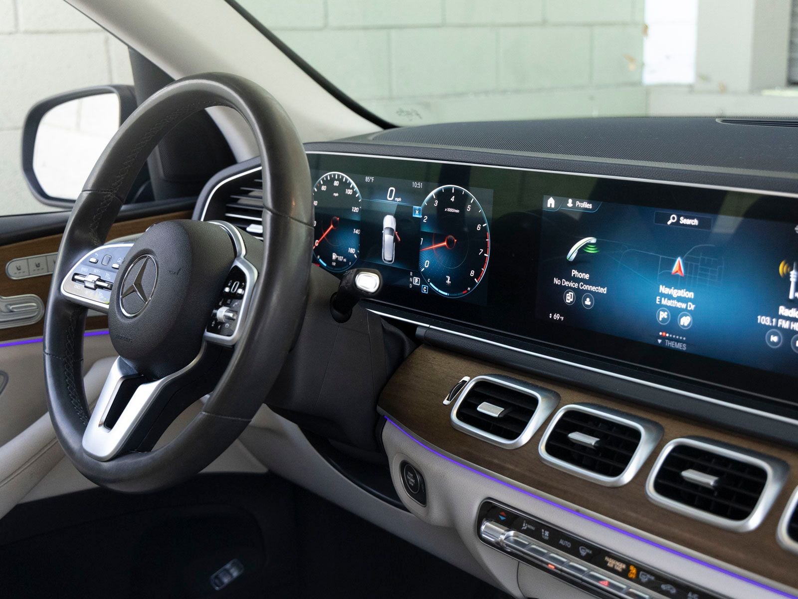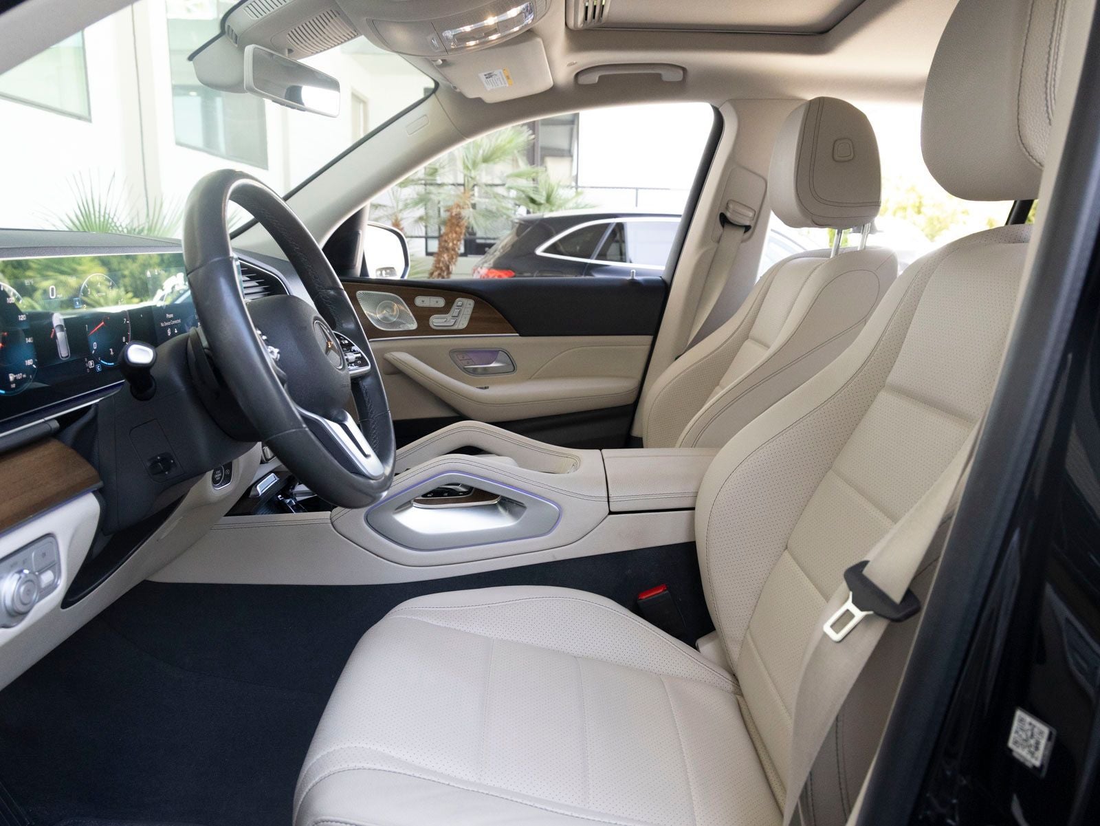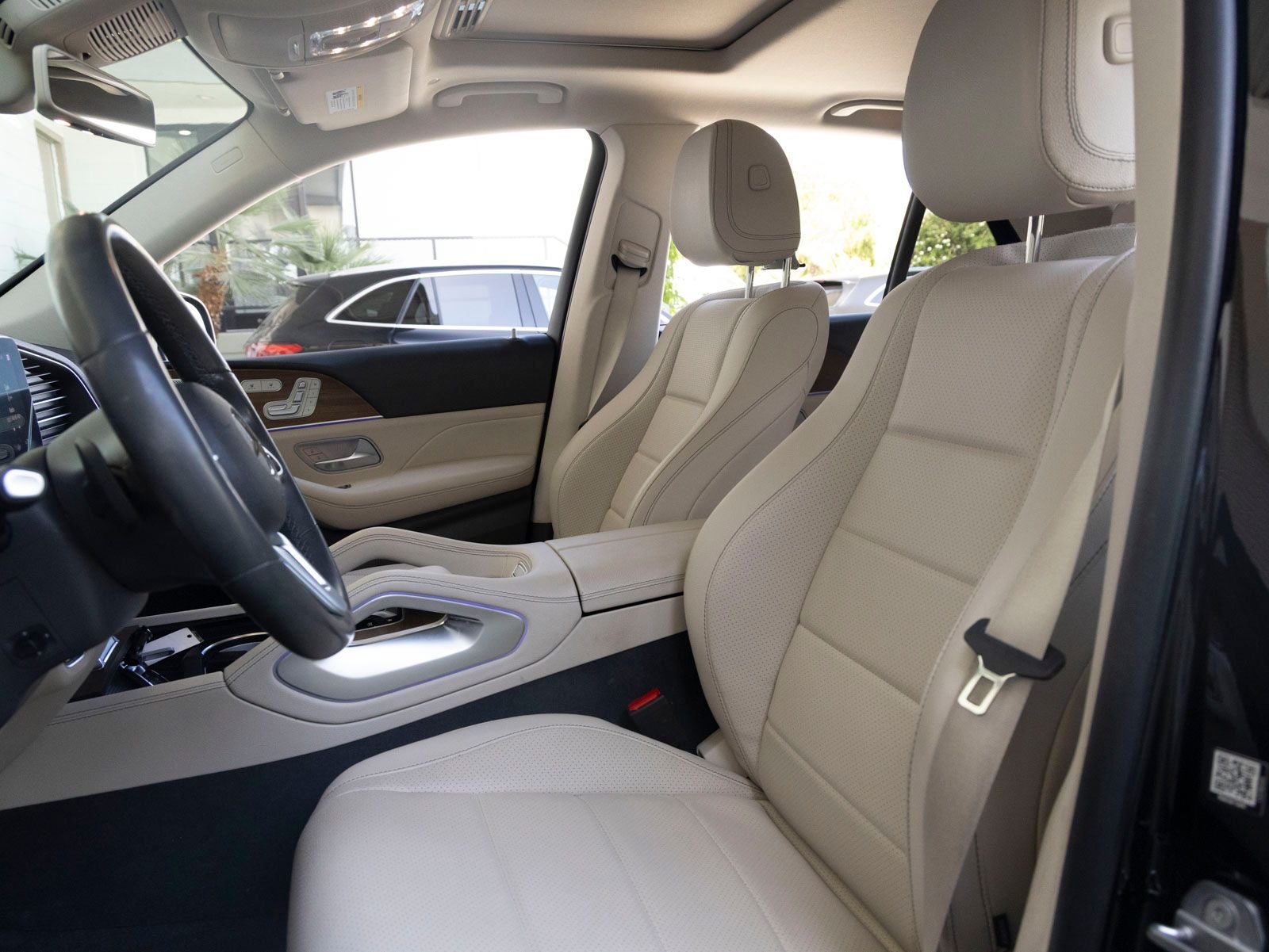 Step inside and the Almond MB-Tex interior greets you, exuding an air of comfort and innovation that only Mercedes-Benz can deliver. The cabin is elevated with Natural Grain Brown Walnut Trim, a Nappa Leather Steering Wheel, and 64-Color Ambient Lighting, creating a warm yet modern atmosphere. Premium amenities such as Heated and Ventilated Front Seats, Heated & Cooled Cupholders, Burmester Surround Sound System, and MBUX Multimedia System with Navigation speak to a thoughtfully crafted luxury experience.