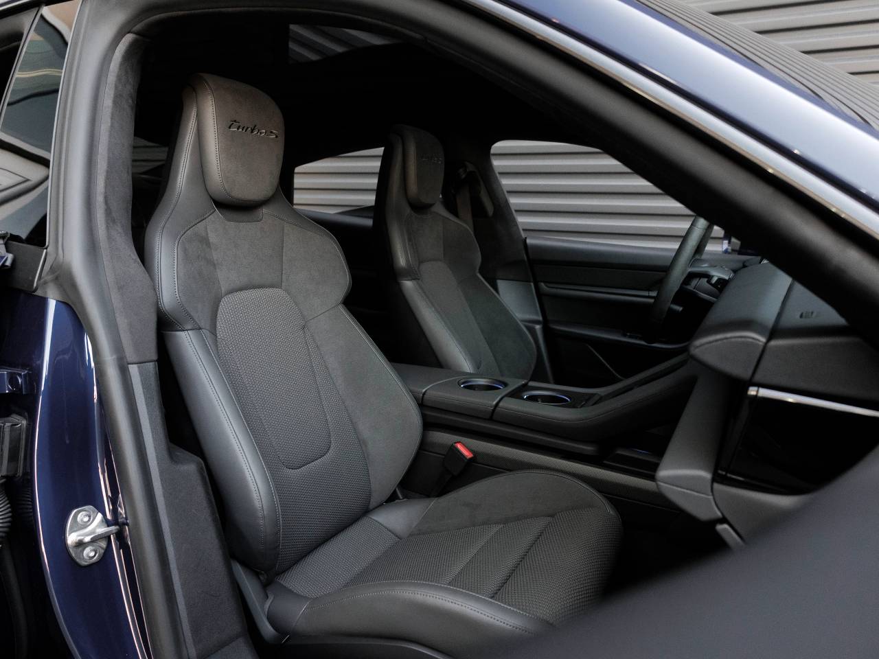 The Taycan Turbo S stands as a beacon of design and performance, its Gentian Blue Metallic exterior not just a color, but a badge of honor that reflects Porsche's illustrious racing heritage. The Power Folding Exterior Mirrors contribute to a sleek profile and daily functionality, while every detail speaks to the harmonious integration of luxury and technology.