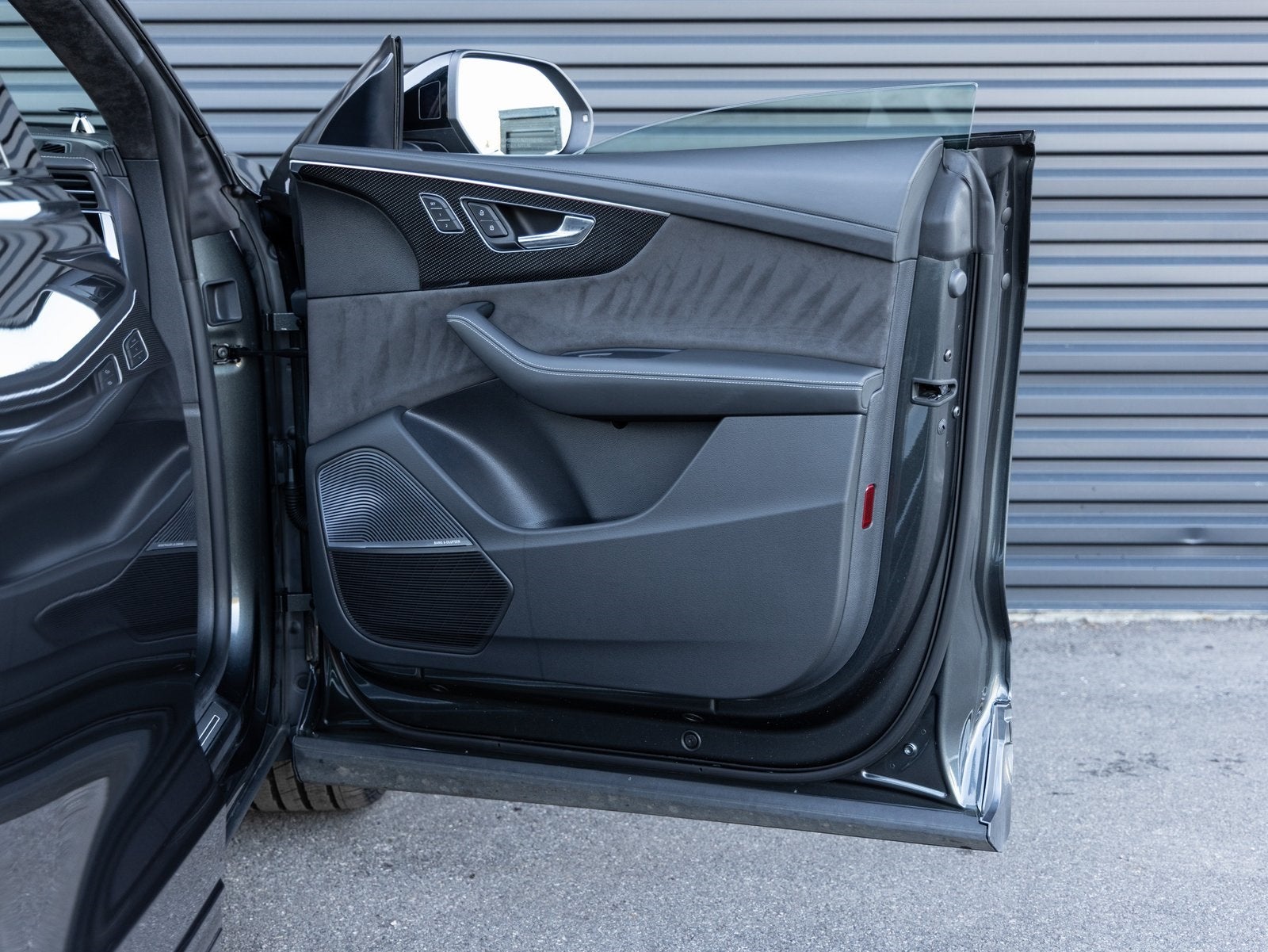 The exterior presents an aggressive and athletic presence, enhanced by the Black Optic Package which adds a darkened exterior treatment and 22 inch 5 V Spoke Star Design wheels in Anthracite with all season tires. Handling and performance are sharpened by the Sport Package, which includes Active Roll Stabilization, the quattro Sport Differential, and distinctive Red Brake Calipers. Everyday versatility is expanded through the Towing Package, while subtle performance focused details are complemented by the Carbon Vector Inlays found throughout the cabin.