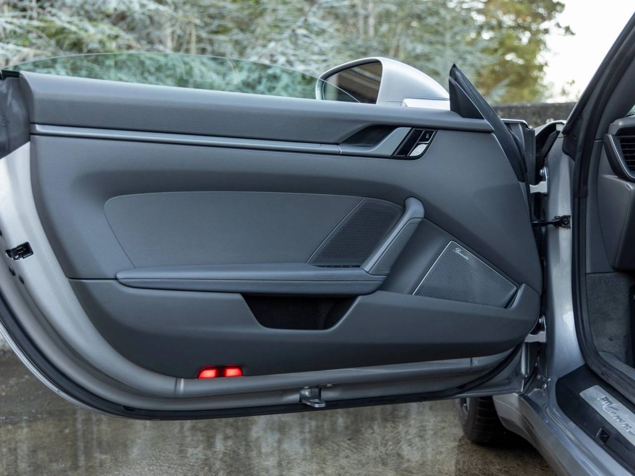 The exterior design is elevated with subtle, performance-focused details, including wheels painted in satin black, high-gloss black brake calipers, and a PORSCHE rear logo in high-gloss black, paired with the deletion of the Carrera S model designation for a cleaner, more modern rear appearance. Clear taillights and rear lid grille slat inlays painted in exterior color add a contemporary and cohesive finish, while power-folding mirrors with painted lower trim and bases underscore the cars premium attention to detail.