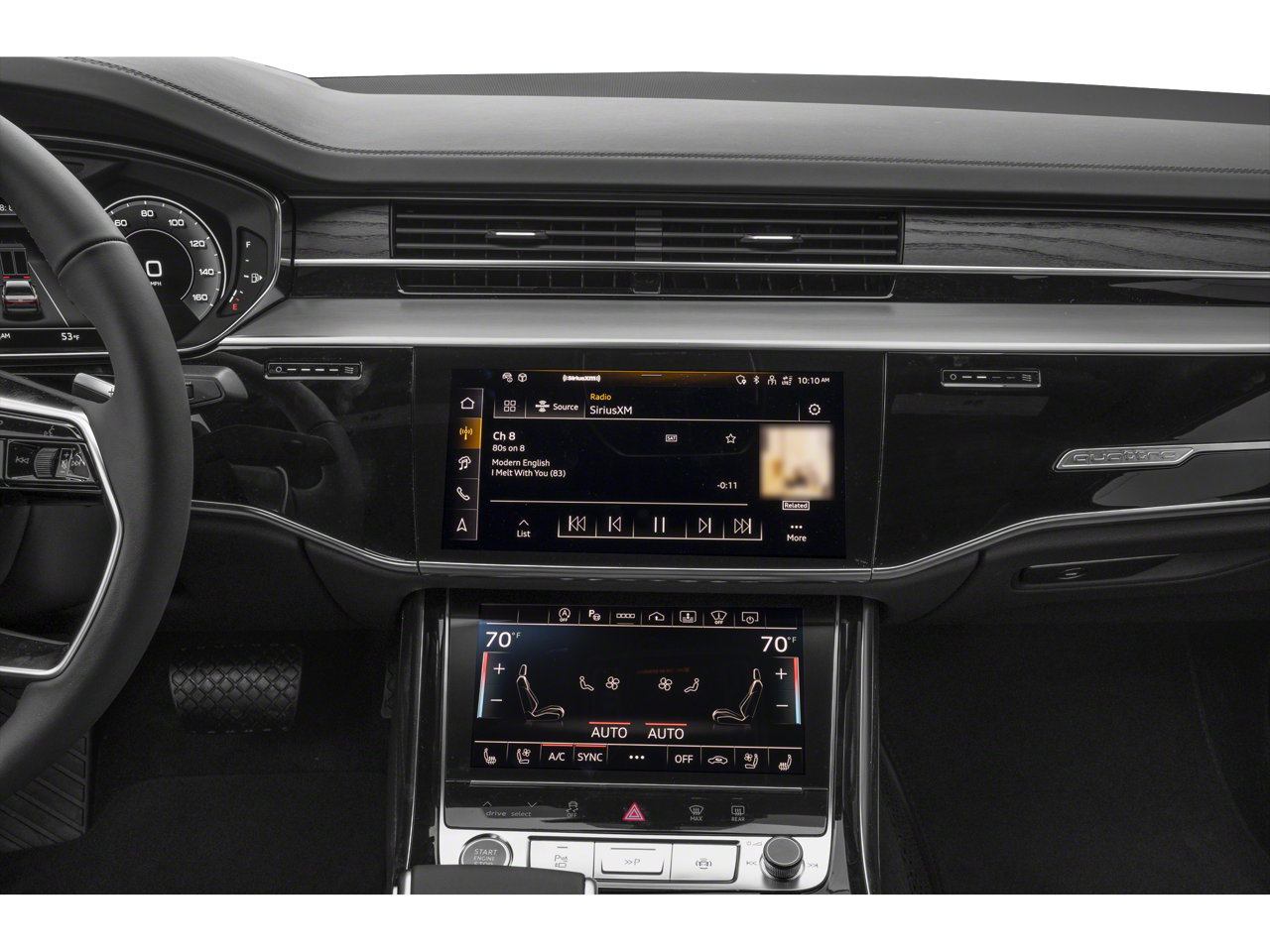 - Radio: Audi MMI Navigation Plus -inc: MMI touch response, Audi connect CARE, PRIME & PLUS (limited time subscription), Audi music interface w/front and rear USB-C ports, Audi phone box w/wireless charging and signal booster, Audi smartphone interface w/wireless Android Auto and wireless Apple CarPlay and SiriusXM w/360L (3 months trial subscription, acceptance of terms required)