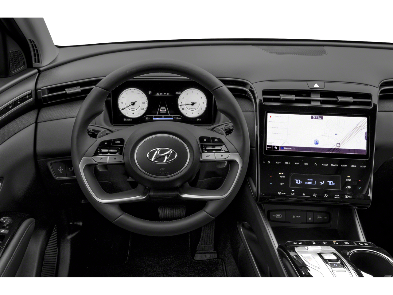 Indulge in the ultimate in-cabin comfort with the Tucson Limited's meticulously crafted interior. Enjoy the convenience of dual-zone automatic climate control, the luxury of heated and ventilated front seats, and the added convenience of a power liftgate.