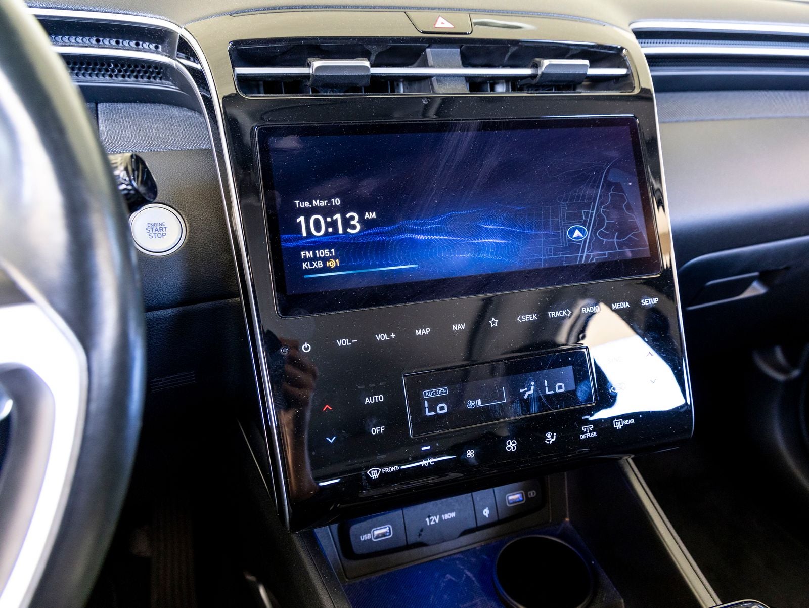 - Radio: Bose Premium w/AM/FM/HD/SiriusXM Audio System -inc: 10.25" color touchscreen w/onboard navigation and traffic flow including incident data via HD radio (HERE) (AVN 5.0), 8 speakers (1 twiddler on center of instrument panel, 2 tweeters, 2 front door, 2 rear door, 1 woofer on rear quarter panel), digital 8 channel amp w/custom equalization, digital signal processing and dynamic speed compensation, Blue Link connected car, Android Auto and Apple CarPlay, USB outlets and Bluetooth® w/voice recognition