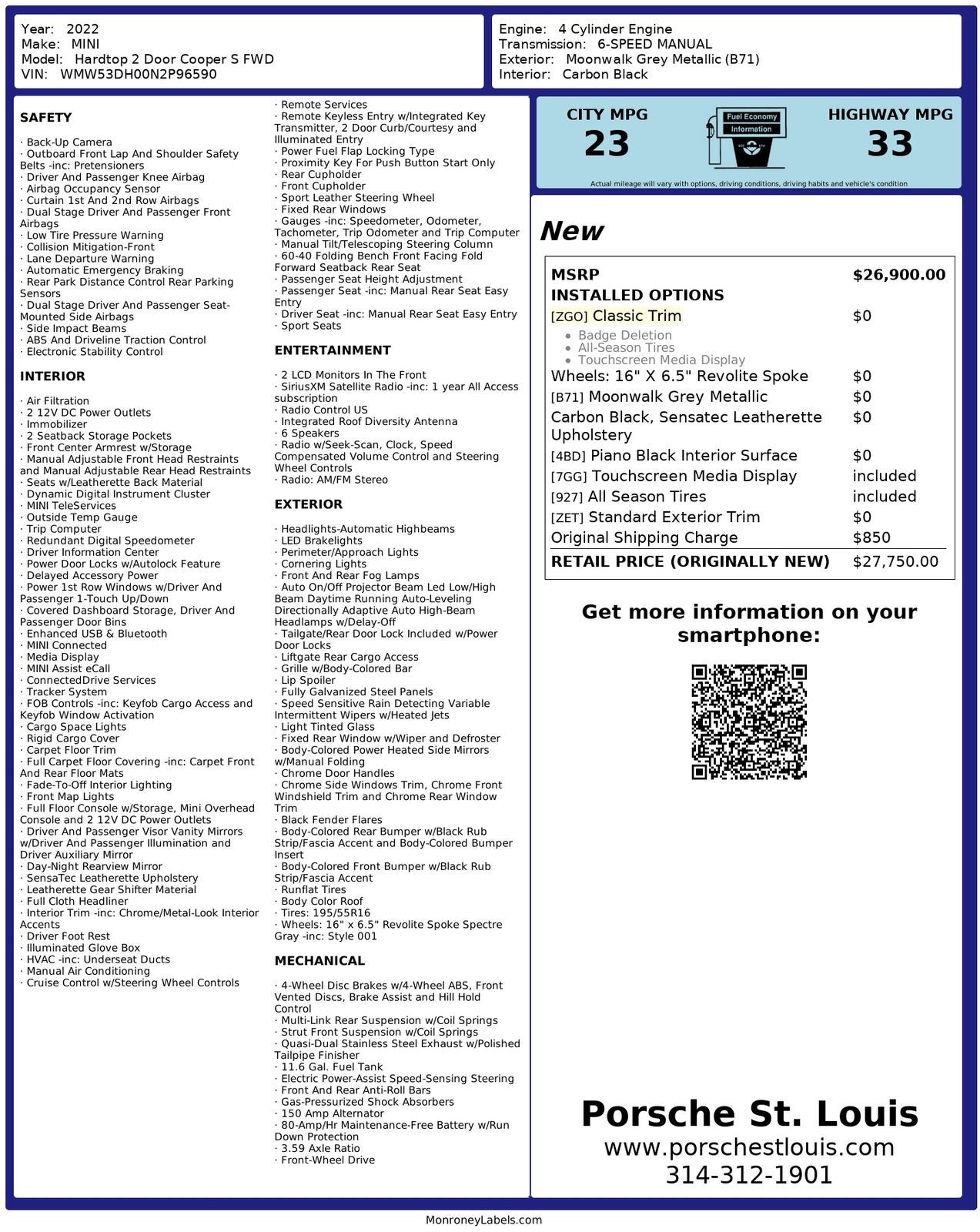 This 2022 MINI Cooper S Hardtop delivers spirited performance, iconic design, and everyday usability, available now at Porsche St. Louis.