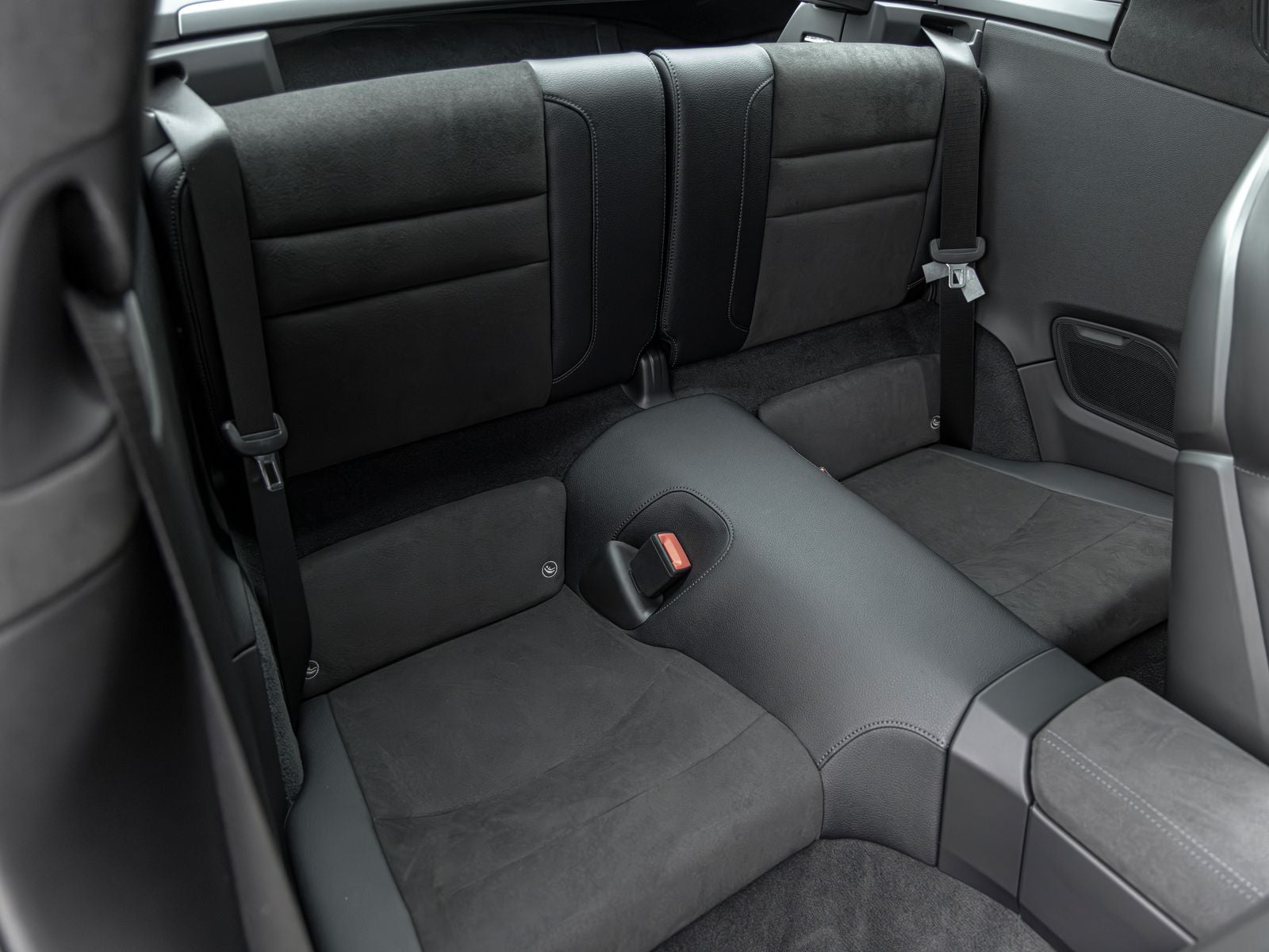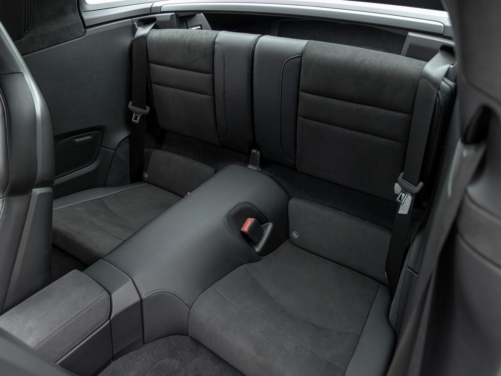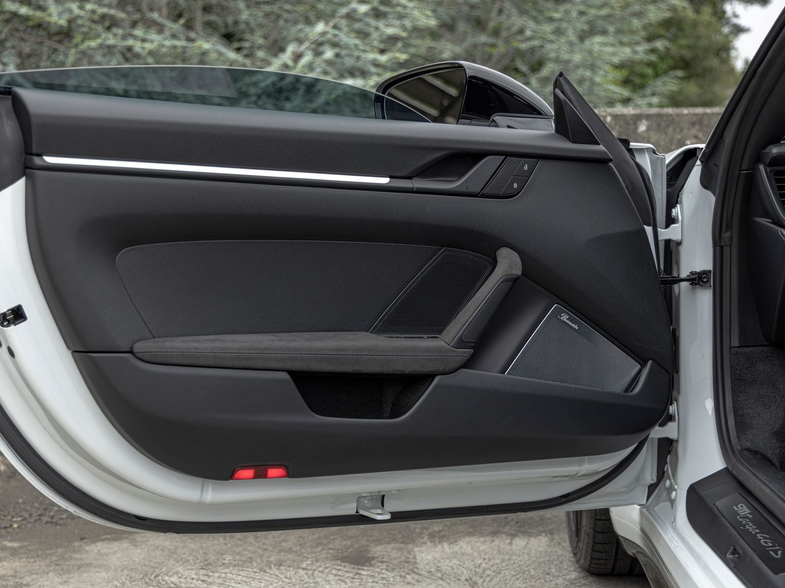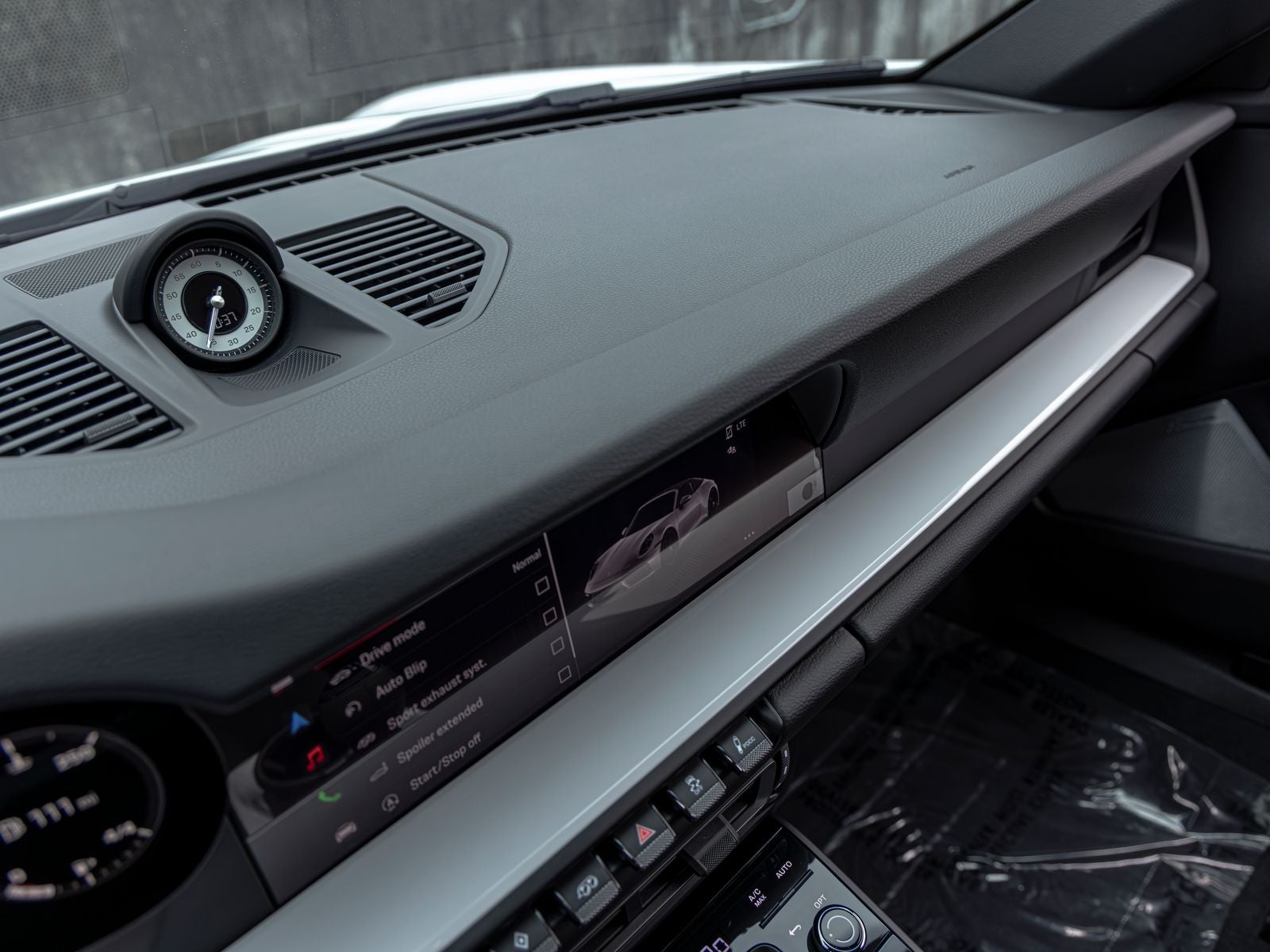 Inside, the cabin is both sporty and refined, featuring Race-Tex upholstery, interior trim inlays painted in the exterior color, and carefully selected white instrumentation including the central tachometer and Sport Chrono stopwatch dial. Ambient lighting and the ionizer contribute to a comfortable and modern interior environment.