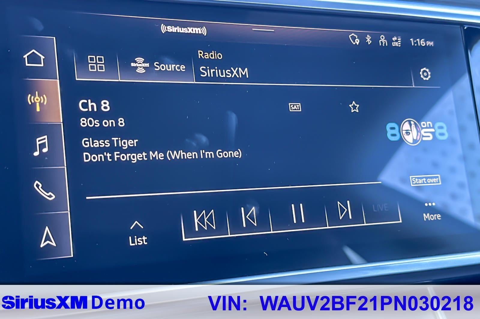 - Radio: Audi MMI Navigation Plus -inc: MMI touch response (10.1" upper screen), Audi connect CARE (limited time subscription), Audi connect PLUS (6-month trial subscription, acceptance of terms required), Audi smartphone interface (wireless Apple CarPlay and Android Auto), Audi sound system, Bluetooth® w/audio streaming and SiriusXM w/360L (3 month trial subscription, acceptance of terms required)