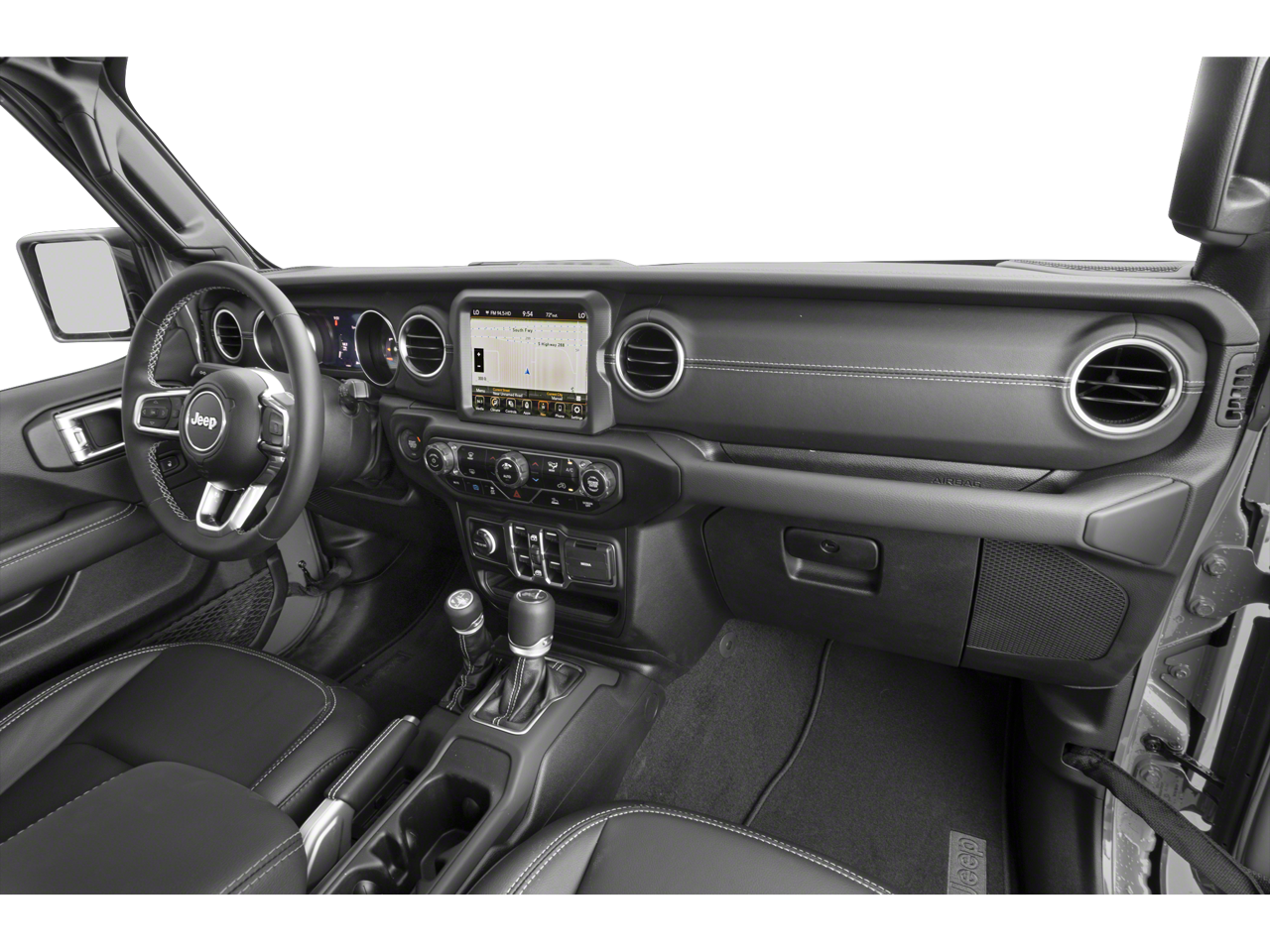 Step inside and experience a rugged yet refined cabin built for adventure and comfort. The leather-trimmed interior features Heated Front Seats, a Premium-Wrapped Steering Wheel, and Ambient LED Interior Lighting. Technology highlights include the intuitive Uconnect 4C NAV System with an 8.4 Touchscreen, Apple CarPlay, Android Auto, Integrated Voice Command, and a 7 Digital Instrument Cluster. Practical features such as Auxiliary Switches, a Universal Garage Door Opener, and All-Weather Floor Mats further enhance everyday usability.
