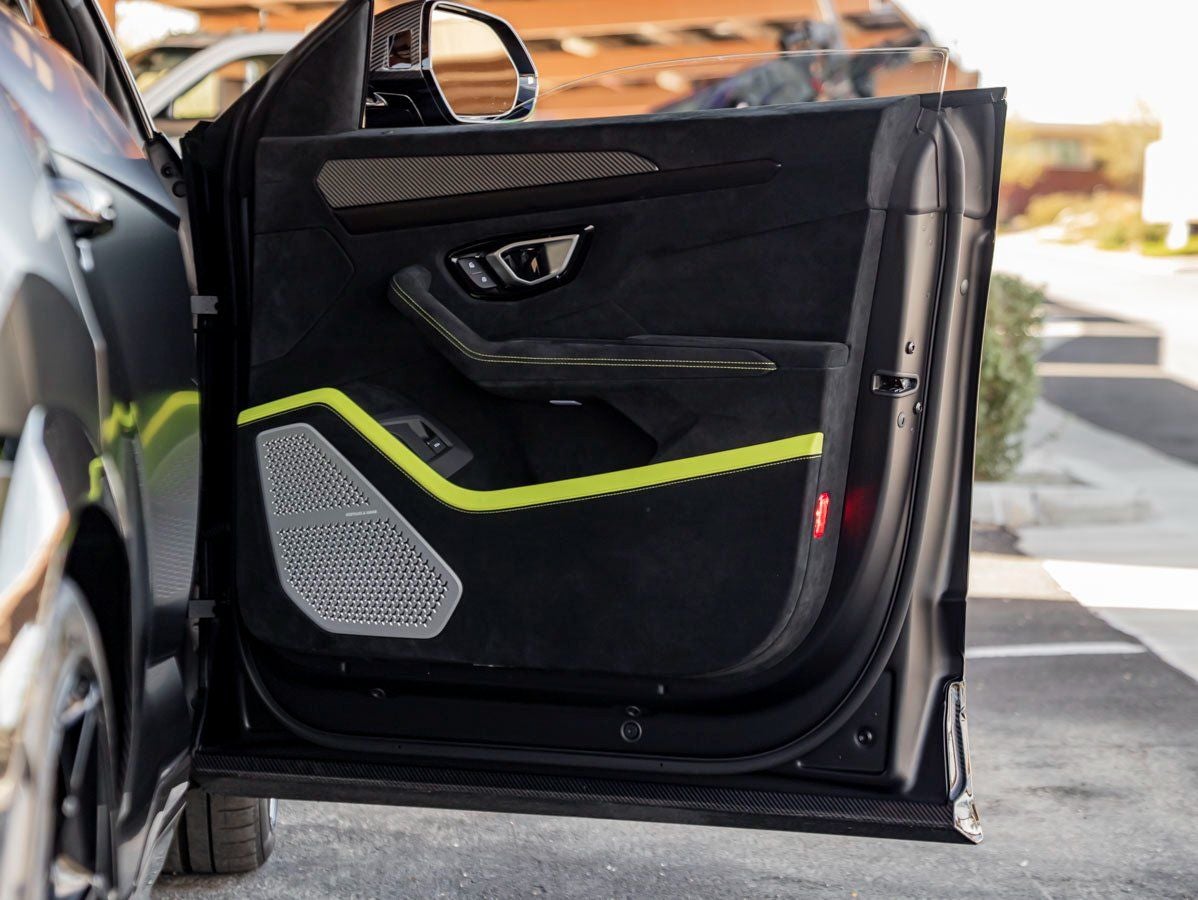 The Urus Performante commands immediate attention with its lower, wider, and more athletic stance. Finished in Nero Nemesis Matt Exterior Paint, its stealth-inspired presence is elevated by the Full Exterior Carbon Fiber Package, showcasing Lamborghinis racing DNA in every sculpted detail. A stunning Roof in Shiny Carbon Fiber adds dramatic contrast, while bold Shiny 23 Pelope Rims and Black Brake Calipers complete the performance-focused aesthetic. Privacy Glass Acoustic enhances both style and cabin refinement, creating an SUV that is as commanding as it is exclusive.