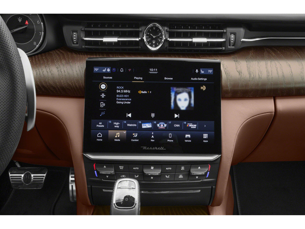 - Radio: AM/FM w/Maserati Intelligent Assistant -inc: 10.1" touchscreen display, navigation, HD Radio, SiriusXM satellite radio w/1-year trial subscription, SD card reader, USB, aux-in, Apple CarPlay and Android Auto capable, Bluetooth® functionality, climate controls, OTA updates, Alexa in-vehicle voice assistant, eCall and bCall, remote diagnostics control, navigation services and app store and wireless charger