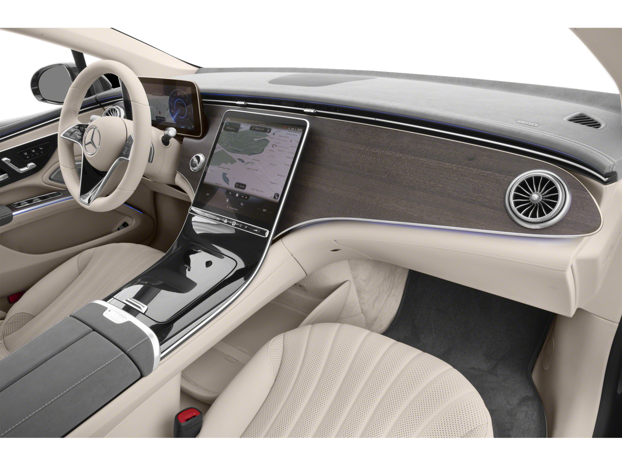 Step inside and the Black / Space Grey Leather cabin welcomes you with an atmosphere of progressive luxury. The interior is appointed with Natural Grain Anthracite Linden Wood trim and a Nappa Leather Steering Wheel, creating a refined and modern aesthetic. Multicontour Front Seats with Massage Function, heated and ventilated front seats, and heated rear seats ensure every passenger travels in first-class comfort. The immersive Burmester Surround Sound System, MBUX Navigation Premium, Augmented Video for Navigation, and advanced ambient lighting transform every drive into a personalized experience.