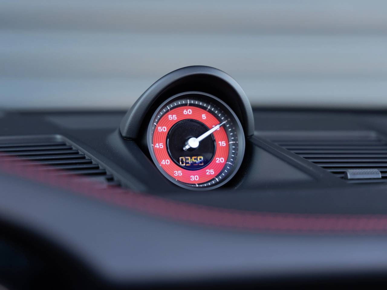Inside, the cabin blends sport and luxury with Adaptive Sport Seats Plus (18-way) with Memory Package, Ventilated Front Seats, and a host of distinctive interior accents. Highlights include Seat Belts in Guards Red, a Central Tachometer and Sport Chrono Stopwatch Dial in Guards Red, and the Deviated Stitching Interior Package in Guards Red extending across the dashboard, door panels, center console lid, and knee pads. Additional features include a Center Console Lid with Porsche Crest, Porsche Crest on Headrests, and the Storage Package. Entertainment is delivered through the exceptional Burmester High-End Surround Sound System.