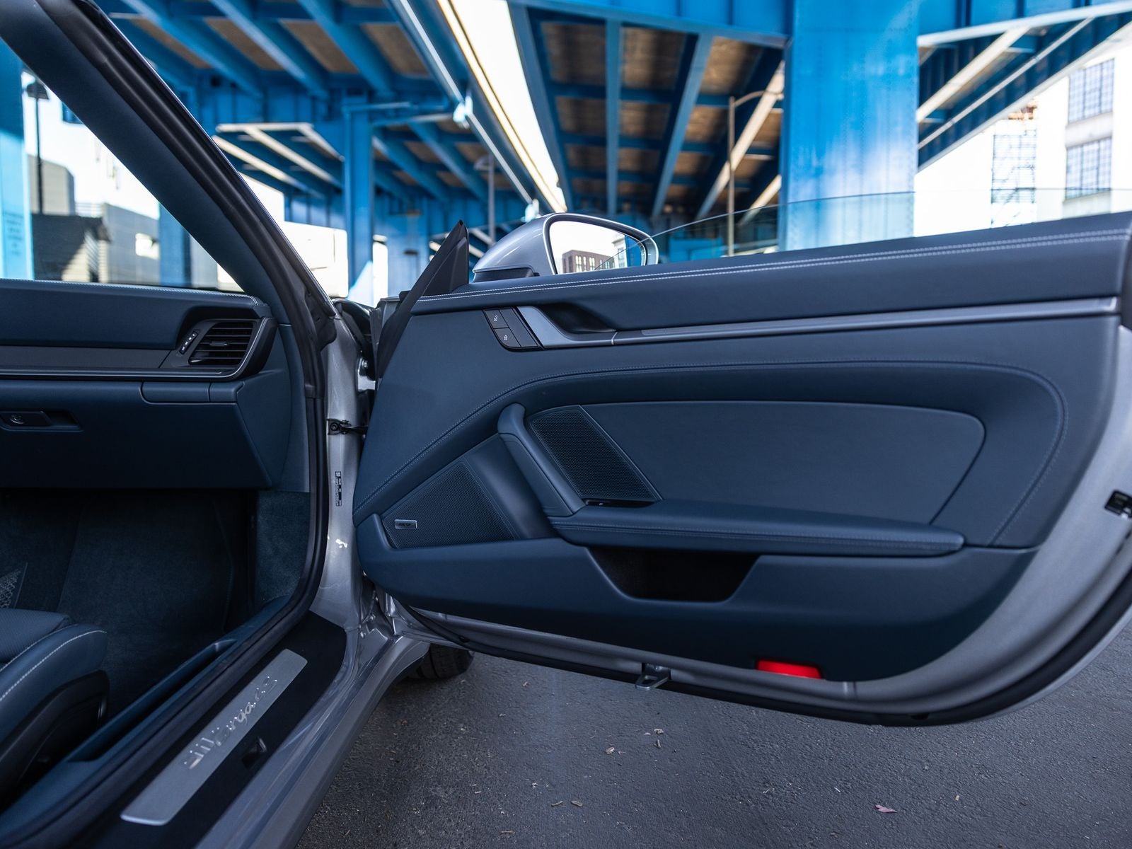 KF Leather Interior in Graphite Blue w/ Chalk Stitching | U2 GT-Silver Metallic | P3W Premium Package w/ Remote ParkAssist (incl. QQ2 Ambient Lighting, 6XV Power-fold mirrors, 4D3 Ventilated Seats, QE1 Storage Pkg, 9VL BOSE) | FT1 Remote ParkAssist incl. LCA & 3D Surround View | 2Y2 Targa Bar in Black | 2UH Front Axle Lift | 8LH Sport Chrono | 1NP Colored crest center caps | 46K 20/21 Carrera Classic Wheels | 2V4 Ionizer | Q2J 14-way Power Sport Seats w/ Memory | 2ZC Heated Steering Wheel | FI8 Seat Belts in Chalk | VN0 Sport Chrono stopwatch dial in Guards Red | 3J7 Porsche crests on headrests | 3V1 Porsche InnoDrive incl. ACC & Active Lane Keep