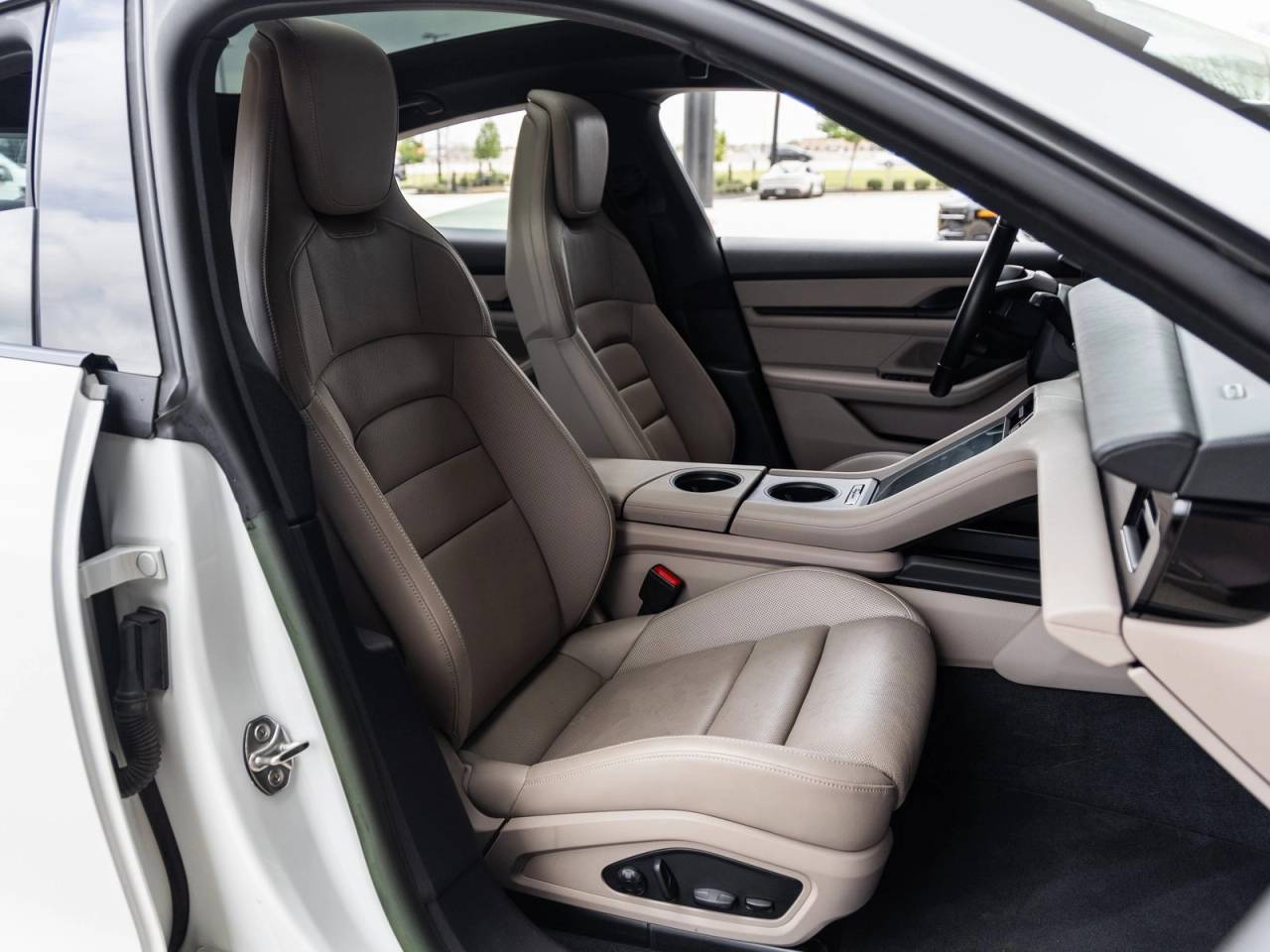 The Taycan stands as a bold expression of Porsches forward-thinking engineering, its White exterior radiating modern sophistication. Adorned with striking 21 RS Spyder Design Wheels and LED Headlights with Porsche Dynamic Light System Plus (PDLS+), it commands attention with both presence and precision. The Panoramic Roof with Variable Light Control enhances the cabins airy ambiance, while Power Folding Exterior Mirrors and Under Door Puddle Light Projectors add thoughtful refinement to its dynamic design.