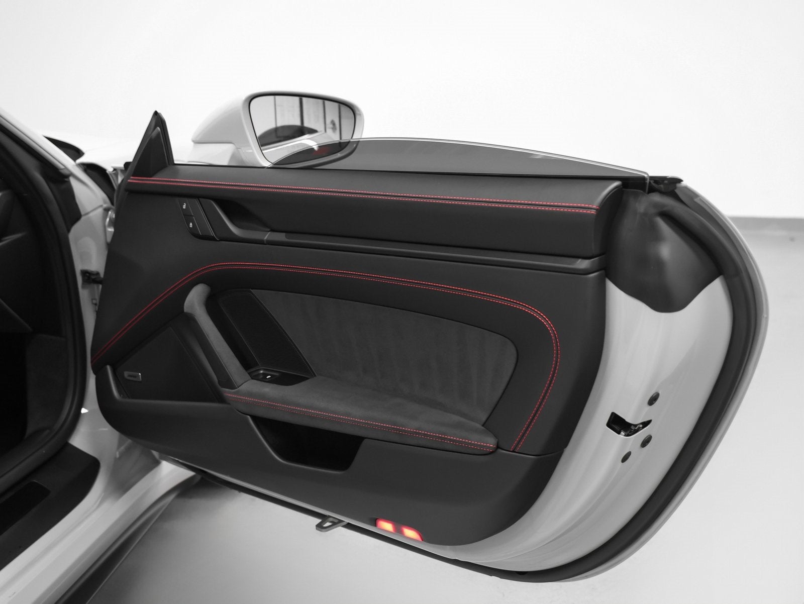 Leather/Race-Tex Interior in Black with Guards Red Stitching