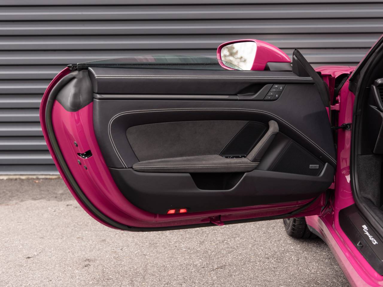 The exterior stands out with LED-Matrix Design Headlights in Black incl. Porsche Dynamic Light System Plus, sleek Illuminated Lateral Gills on Taillights, and Under Door Puddle Light Projectors for added elegance. Practical touches such as the Power Folding Exterior Mirrors and the unique Targa roof design showcase the perfect balance of style and function. The captivating Ruby Star Neo finish highlights the sculpted lines and GTS-specific design elements that set this 911 apart.
