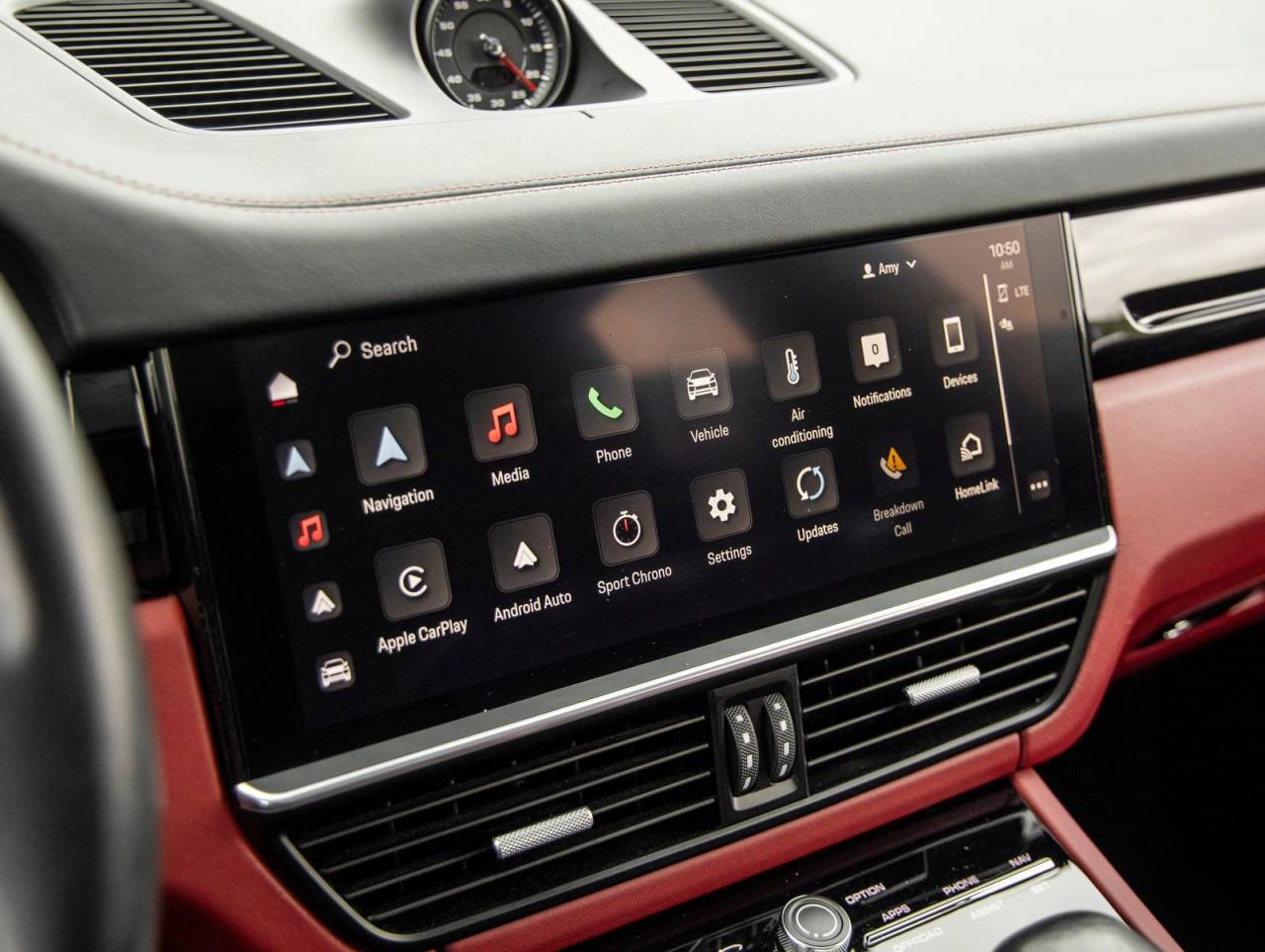 Step inside and the Leather Interior in Black/Bordeaux Red greets you, exuding an air of luxury that only Porsche can deliver. The Ambient Lighting sets the mood, while the Interior Trim in High Gloss Black adds a sleek, modern touch. The Head-Up Display and Surround View system provide cutting-edge convenience, and Comfort Access along with Soft Close Doors elevate everyday usability with a premium feel.