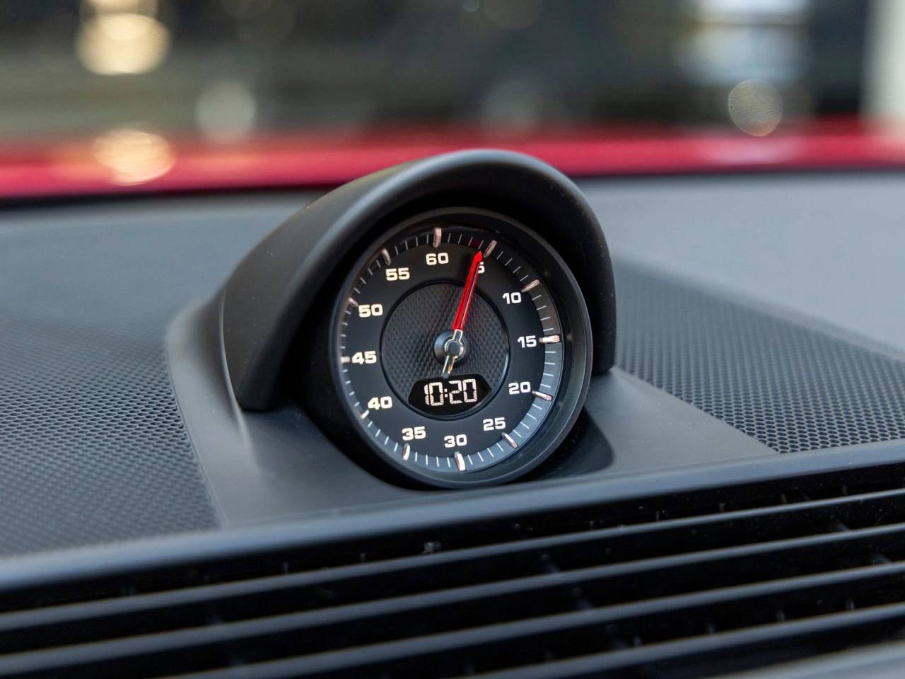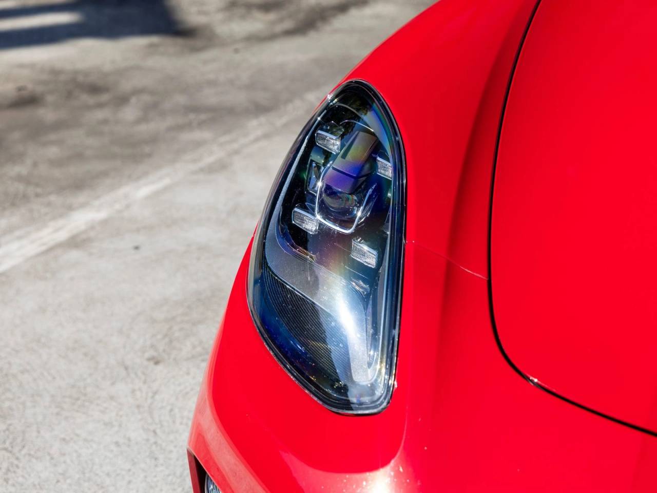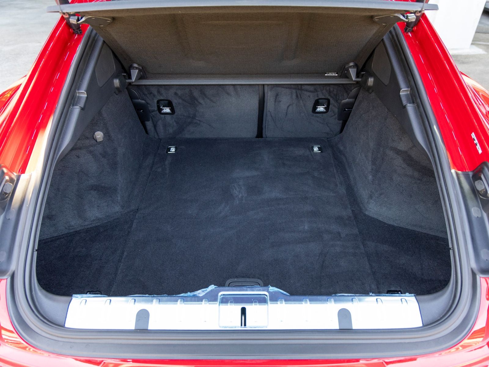 The exterior stands out in Carmine Red, complemented by 21 Exclusive Design wheels in High Gloss Black and painted air outlet grilles, adding a refined yet sporty character. Its sleek silhouette reflects Porsches signature design language while maintaining the practicality of a four-door platform.