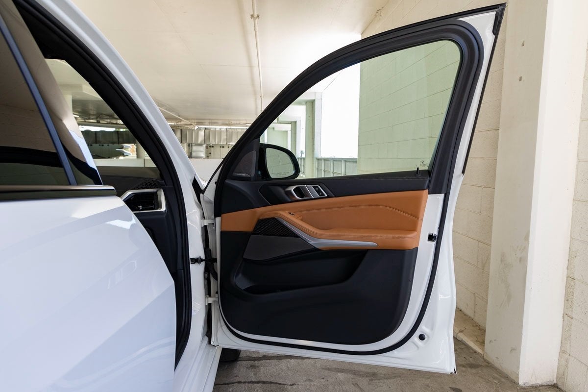 Bold and athletic, this X5 M60i is enhanced by the M Sport Package Pro and M Sport Professional Package, featuring Extended Shadowline Trim, M Shadowline Lights, M Sport Brakes with Red Calipers, and striking 20 x 9 M Star-Spoke Bi-Color wheels. Its sculpted body-color bumpers, aerodynamic accents, rear spoiler, and Panoramic Sky Lounge LED Roof create a commanding presence. Soft-Close Automatic Doors, heated power mirrors with integrated turn signals, and advanced parking camera systems further elevate convenience and sophistication.