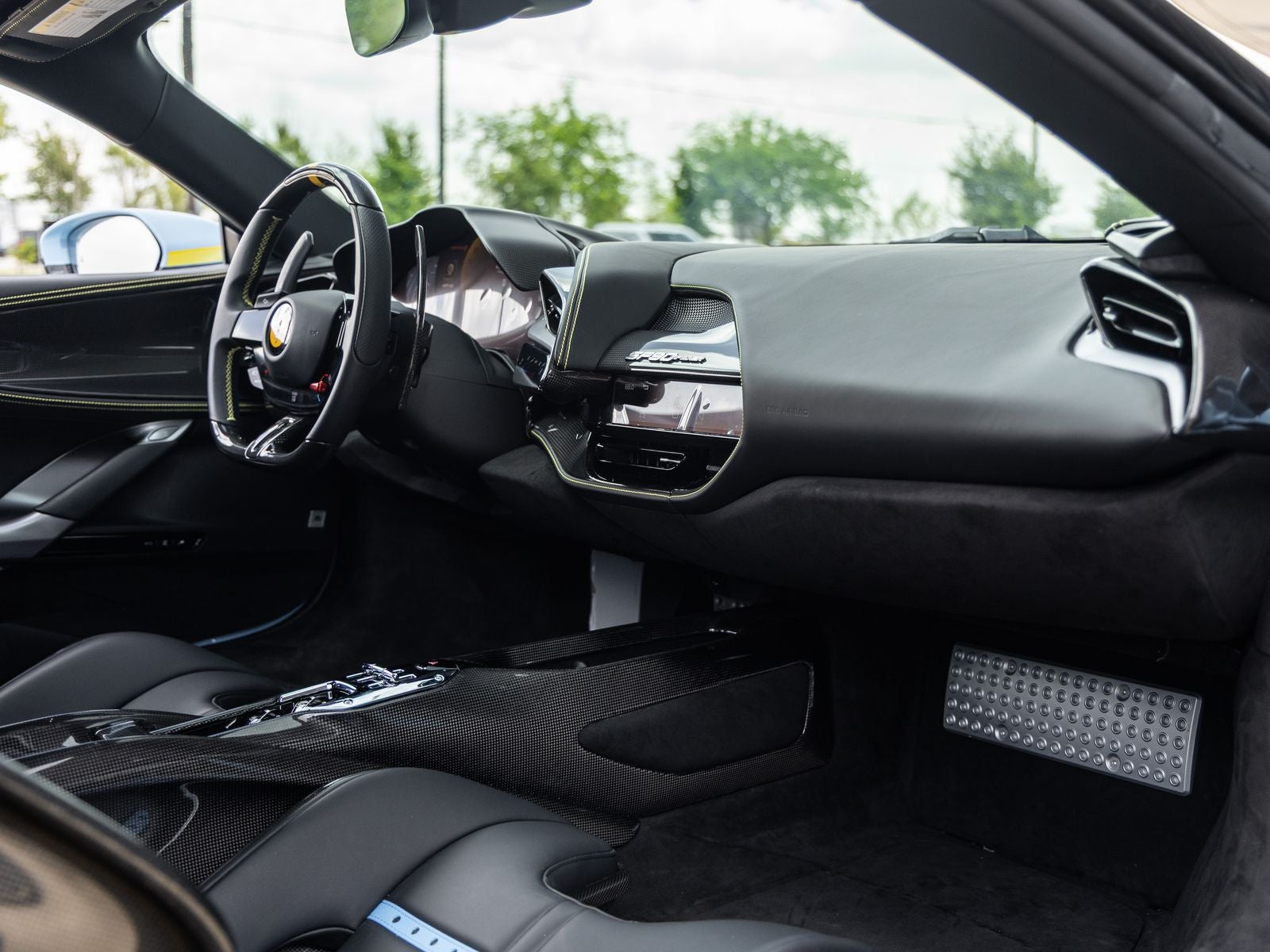 Step inside and the Nero interior envelops you in a driver-centric cockpit crafted with precision and luxury. Daytona Racing Seats in a larger size configuration, Carbon Fiber Driver Zone with LED shift lights, and extensive carbon fiber trim throughout create an immersive performance environment. Yellow accents including Seat Belts and Cavallino stitching, along with Premium Hi-Fi System and Apple CarPlay integration, blend cutting-edge technology with bespoke Italian design.