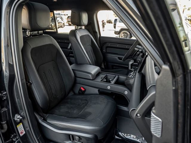 Engine and Performance: At the heart of this commanding SUV lies a formidable 5.0-liter Supercharged V8, producing an exhilarating 518 horsepower and 461 lb-ft of torque. Paired with a responsive 8-speed automatic transmission and Land Rovers advanced All-Wheel Drive system, the Defender V8 delivers breathtaking acceleration with a 060 mph time of approximately 4.9 seconds. Engineered with precision-tuned suspension and performance enhancements unique to the V8 model, it offers a thrilling yet composed driving experience both on and off the road.