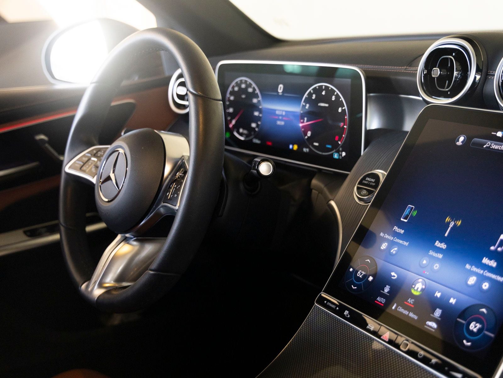 Step inside and the Sienna Brown MB-Tex Interior welcomes you with warmth and modern elegance. The cabin is thoughtfully appointed with Fineline Anthracite Wood Trim and a sleek, digital-forward layout featuring a 12.3 Digital Instrument Cluster and central display. Comfort is enhanced with Heated Front Seats, Premium Ambient Lighting, and a spacious layout designed to accommodate both driver and passengers in refined comfort.