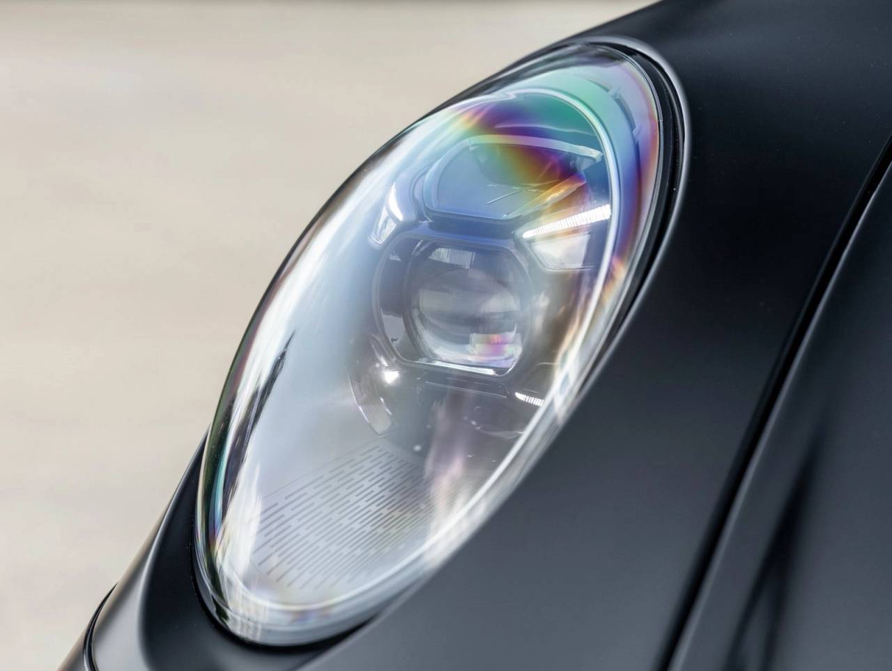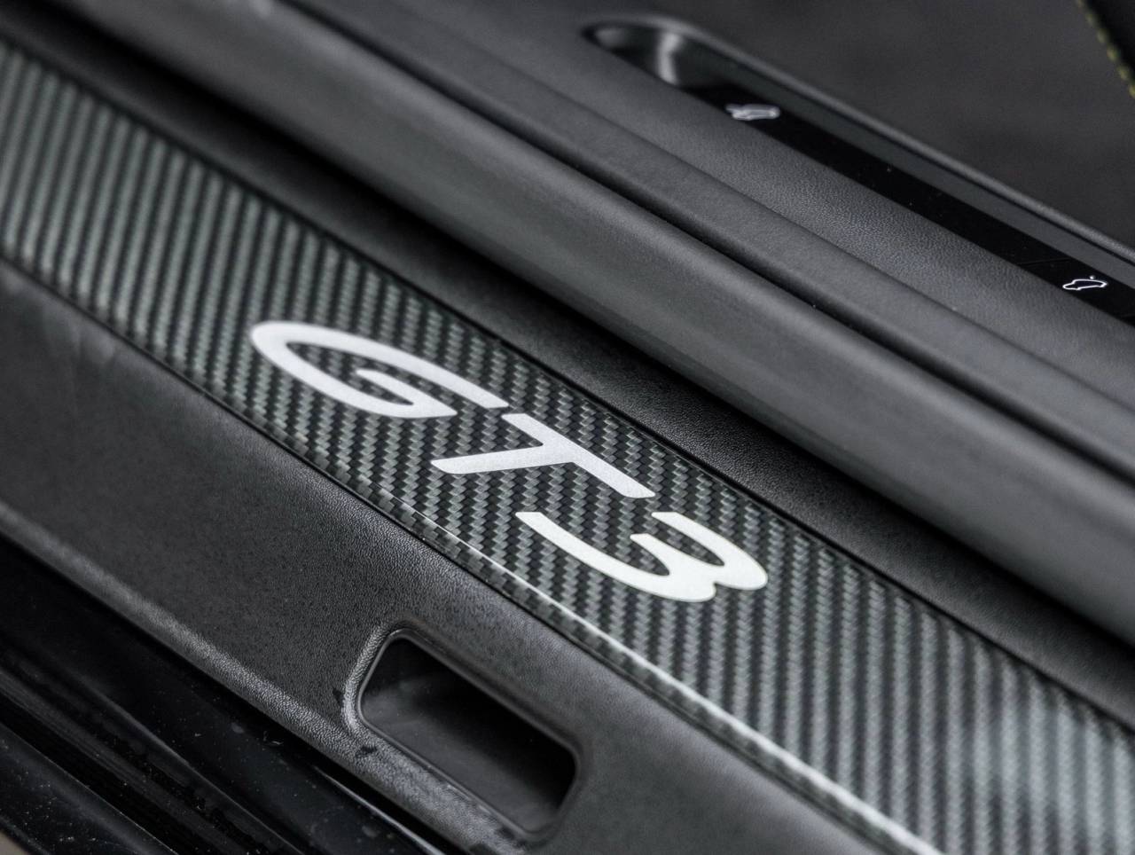 The GT3 makes a bold statement with its Carbon Fiber Roof, LED-Matrix Design Headlights in Black with Porsche Dynamic Light System Plus (PDLS+), Exclusive Design Taillights, and Carbon Fiber exterior accents. The Model Designation Delete adds to the stealthy, race-inspired aesthetic, while details like the Exclusive Design Fuel Cap and Under Door Puddle Light Projectors add unique character.