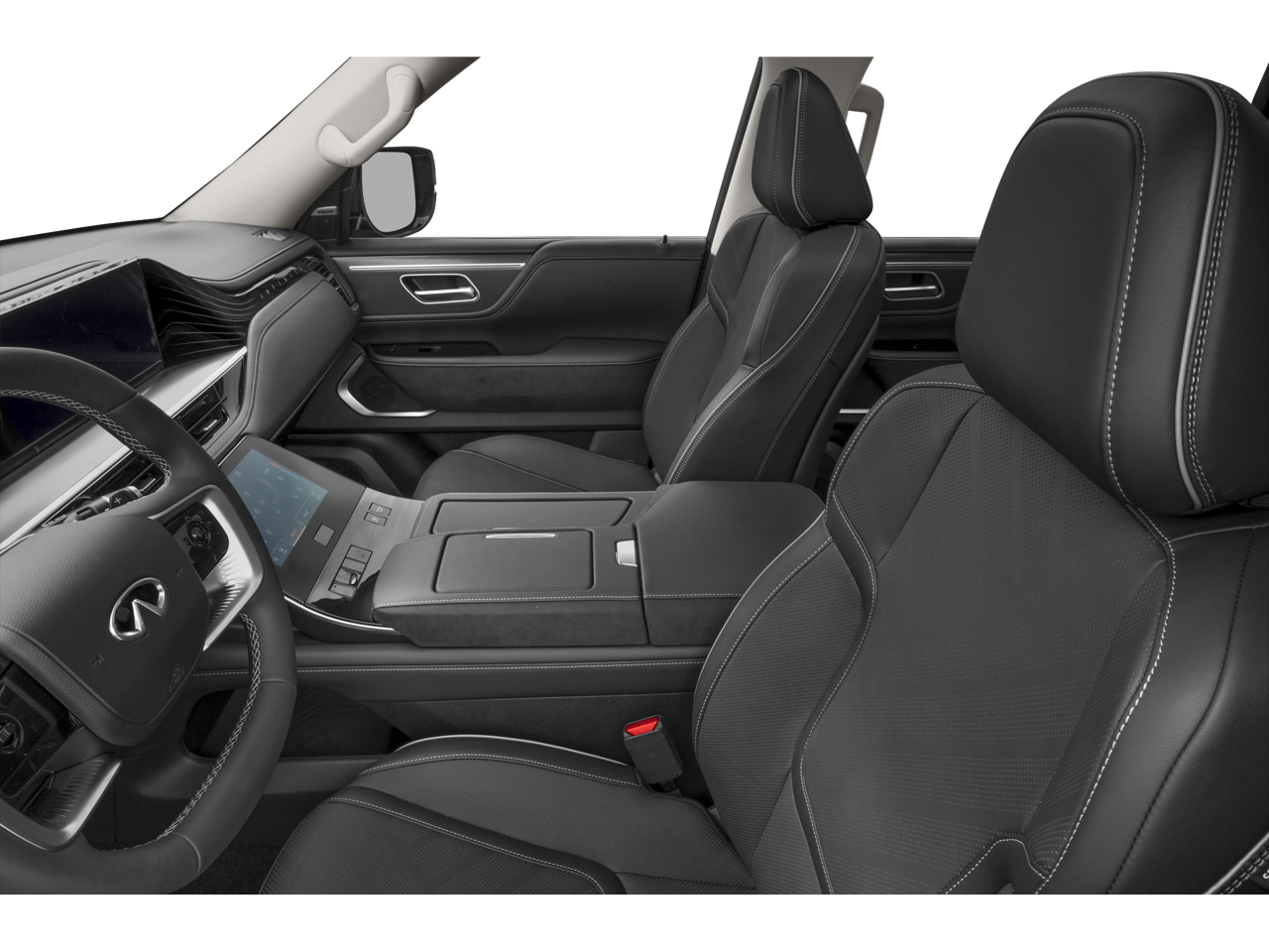 Inside, the spacious cabin is designed with luxury and comfort in mind. Leather Seating Surfaces, Climate-Controlled Front Seats, Heated and Ventilated Front Seats, Heated Rear Seats, and Ventilated Rear Seats provide comfort for passengers in all three rows. The 3rd-row bench seating with reclining functionality allows the QX80 to accommodate family and passengers with ease.