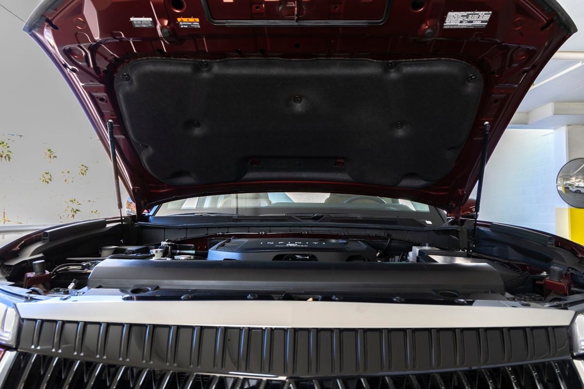 Under the hood, the QX80 LUXE is powered by a 3.5L V6 DOHC engine paired with a 9-Speed Automatic transmission, delivering smooth acceleration and confident performance. Adaptive Suspension, Auto-Leveling Suspension, and Four-Wheel Independent Suspension provide a refined and composed ride, while advanced traction and stability systems help ensure confident handling.