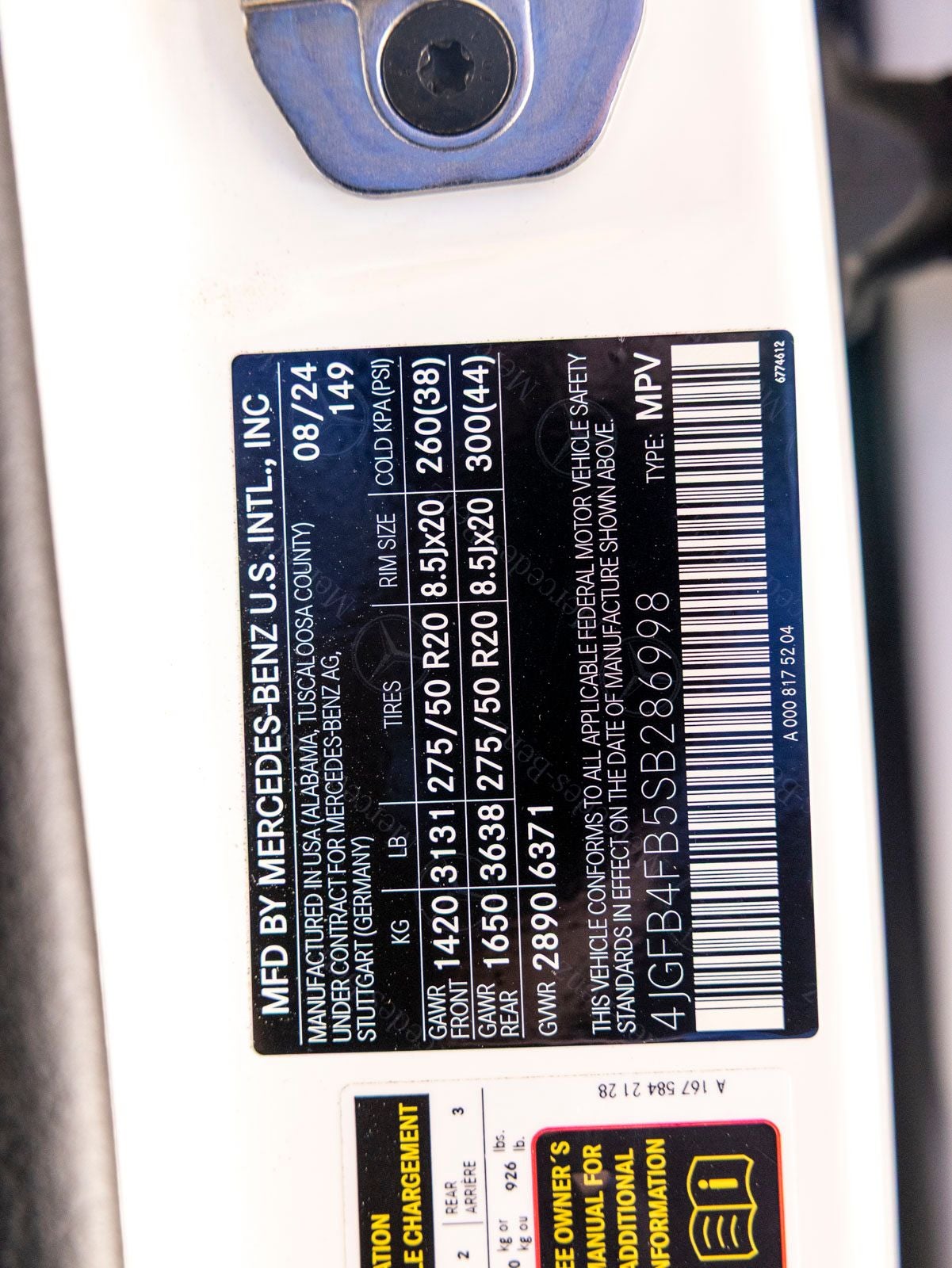 - Front Tire Size: P275/45HR21