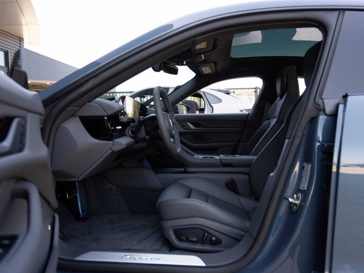 The Taycan stands as a beacon of design and performance, its Pale Blue Metallic exterior exuding futuristic elegance and Porsches timeless presence. Sitting on 21-inch RS Spyder Design Wheels, it offers an aggressive yet refined stance. Model Designation on the Rear and electric Logo on the Doors in Satin Black enhance the clean, electrified look. With a Fixed Panoramic Roof in Glass, the Taycan merges cutting-edge aerodynamics with an open-air sense of luxury.