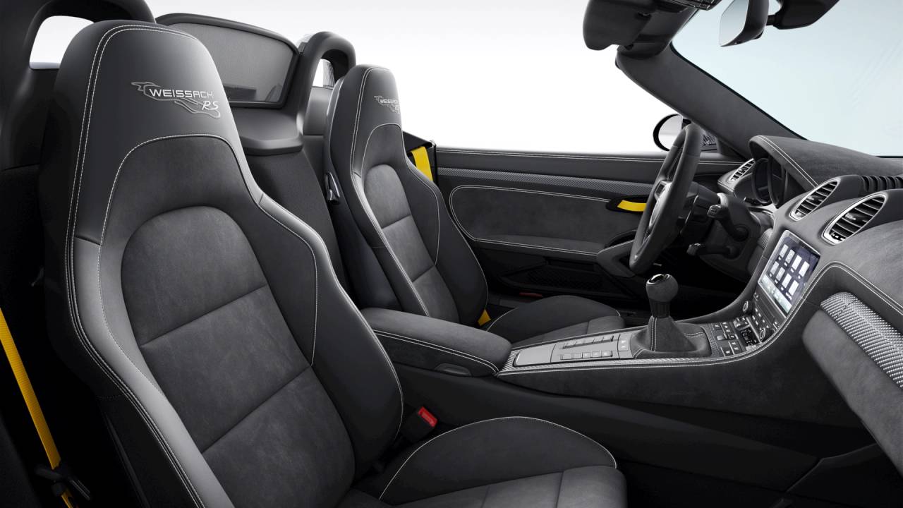 Engine and Performance: The 718 Spyder RS is powered by a 4.0 liter naturally aspirated flat six engine derived from the 911 GT3, producing 493 horsepower and 331 lb ft of torque, paired with a 7 speed Porsche Doppelkupplung (PDK) transmission and rear wheel drive. This high revving engine delivers an intense, race inspired driving experience with open air exhilaration.