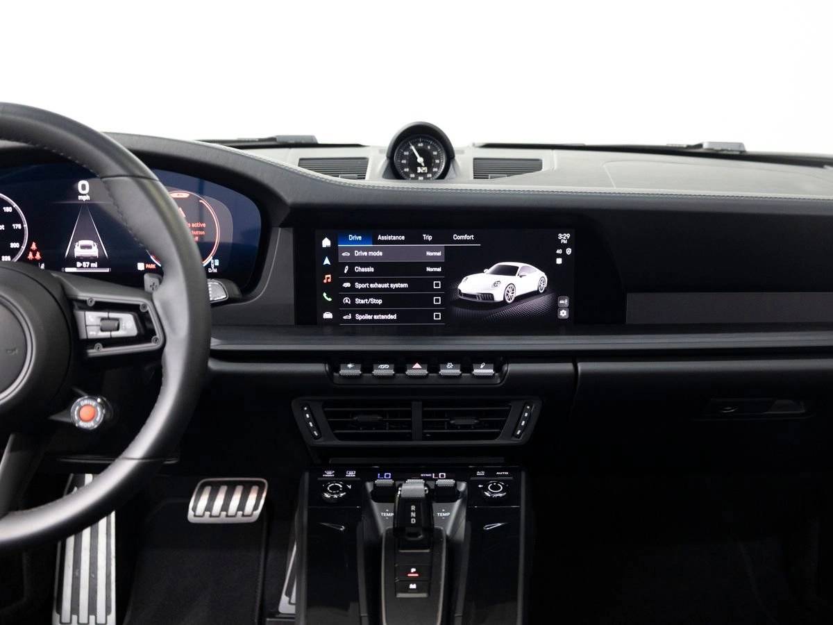 Engine and Performance: At the heart of the Carrera GTS lies a powerful 3.6-liter turbocharged flat-six engine producing an impressive 532 horsepower and 449 lb-ft of torque. Paired with Porsches lightning-fast 8-speed Porsche Doppelkupplung (PDK) transmission, the GTS delivers exhilarating acceleration and razor-sharp responsiveness. Porsche Ceramic Composite Brakes (PCCB) with High Gloss Black calipers provide exceptional stopping power, while Power Steering Plus and the Front Axle Lift System enhance everyday drivability without compromising performance.