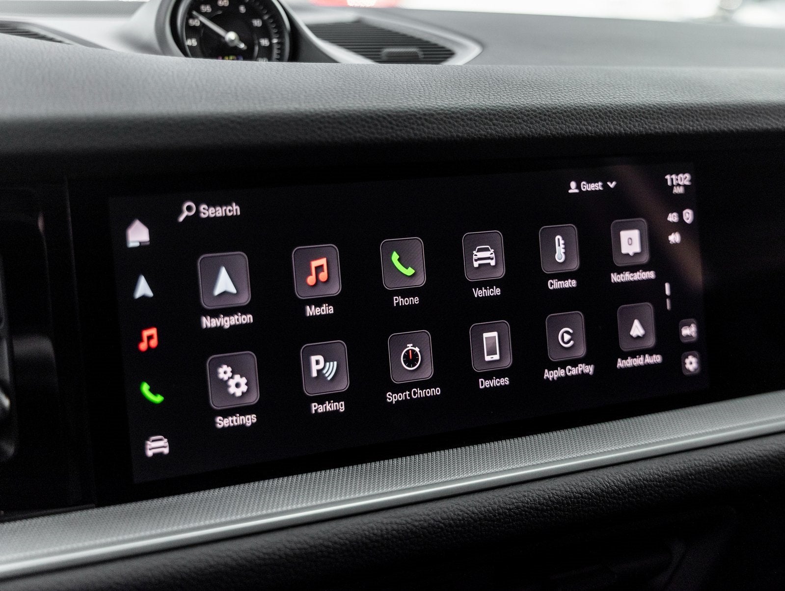 Step inside and the Standard Interior in Black greets you, exuding an air of refinement that only Porsche can deliver. The cabin features 14-Way Power Seats with Comfort Memory, Ventilated Front Seats, Heated Rear Seats, and 4-Zone Climate Controlensuring every journey is enveloped in comfort. Touches like the Porsche Crest on Headrests, Heated GT Sport Steering Wheel in Leather, and the cutting-edge Passenger Display speak to a blend of luxury and modernity.