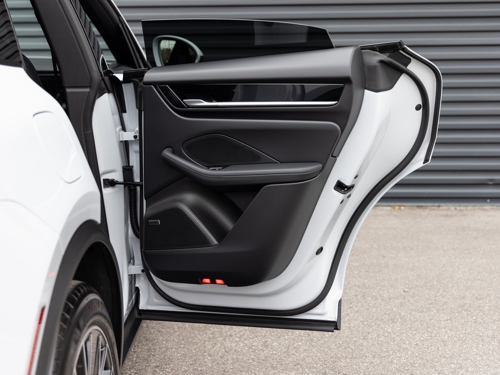 The exterior presents a clean, confident look featuring 21 inch Macan Design Wheels, Side Blades in Exterior Color, and Roof Rails in Black Aluminum. Convenience is elevated with Under Door Puddle Light Projectors. Distinctive LED Matrix Design Headlights in Glacier Blue provide exceptional clarity and a striking visual signature.