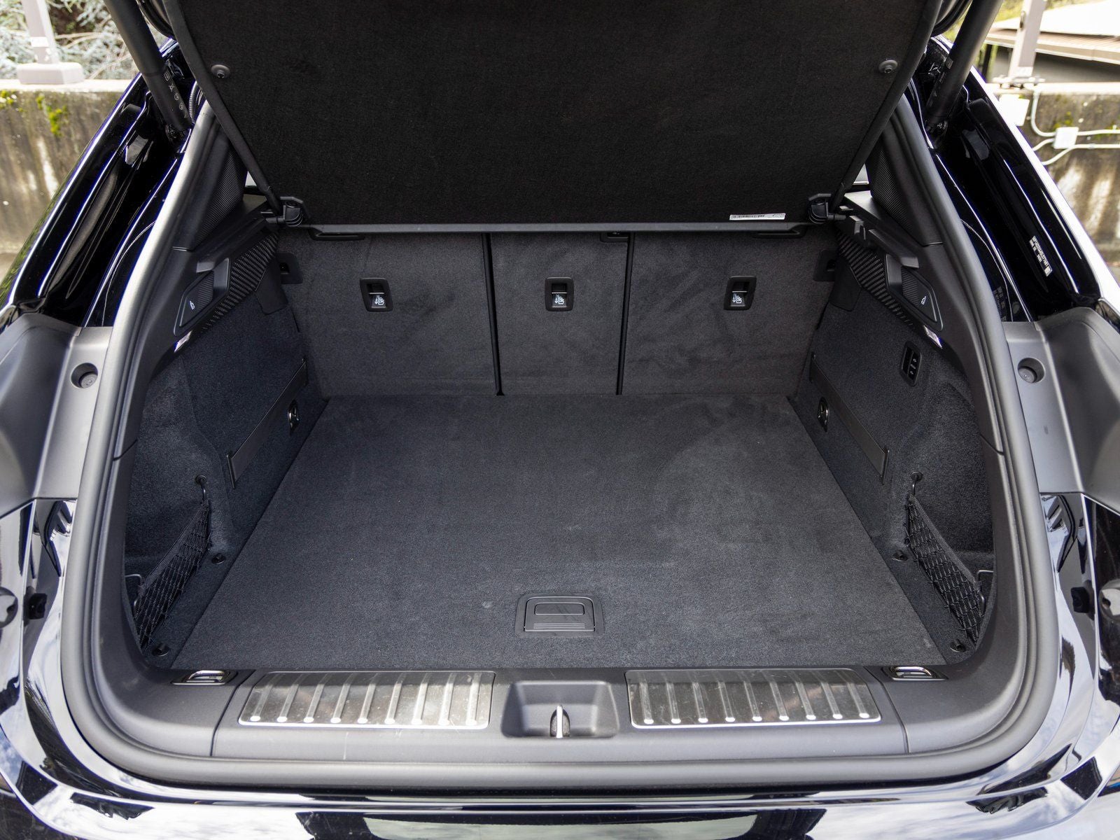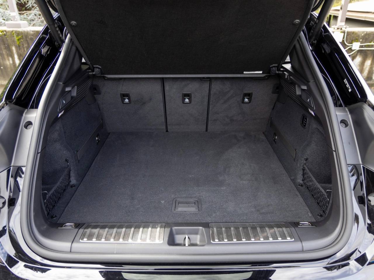 The exterior is complemented by 22 Exclusive Design wheels, black aluminum roof rails, a power charge port cover, trailer hitch without tow ball, and under door puddle light projectors for added functionality and distinctive detail. Inside, Porsche crests embossed on the front and rear headrests and a heated GT Sport steering wheel further elevate the premium feel of the cabin.