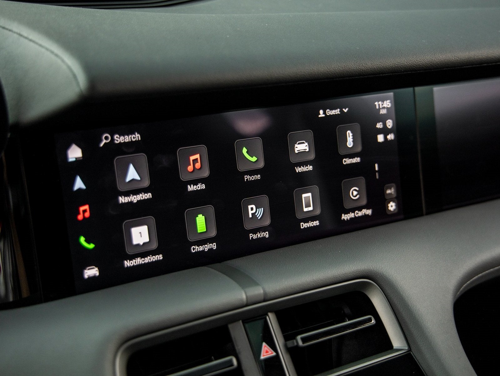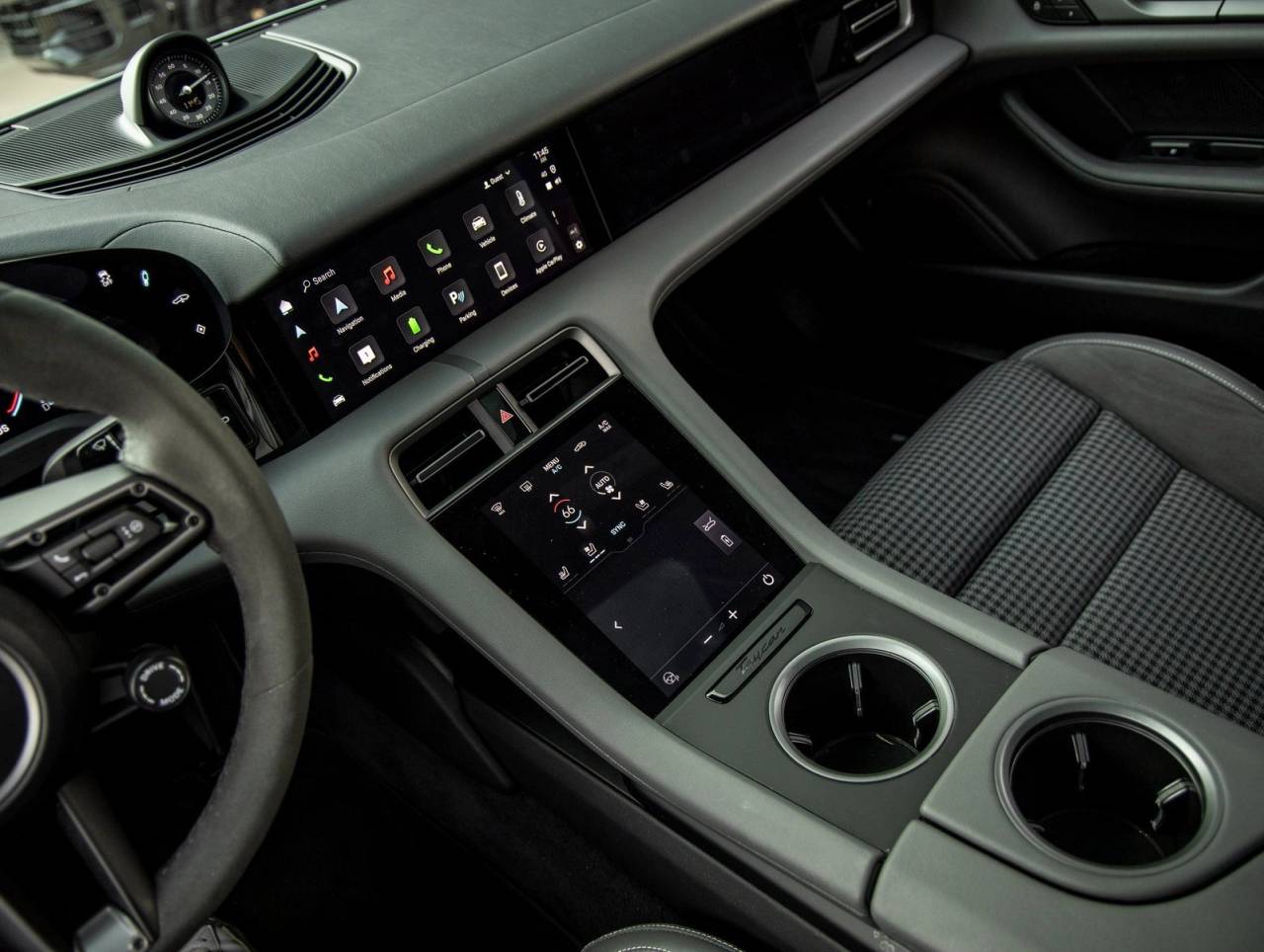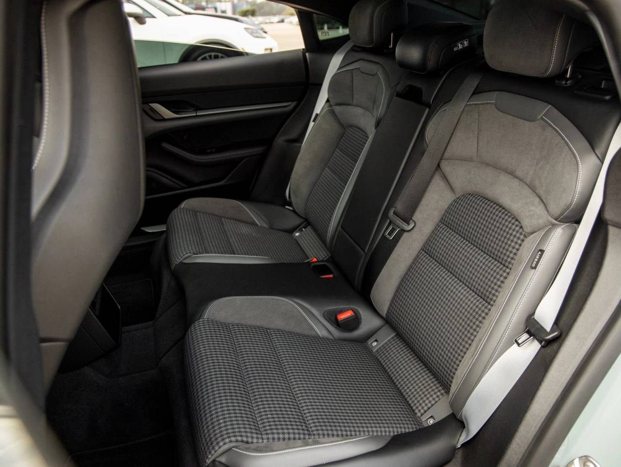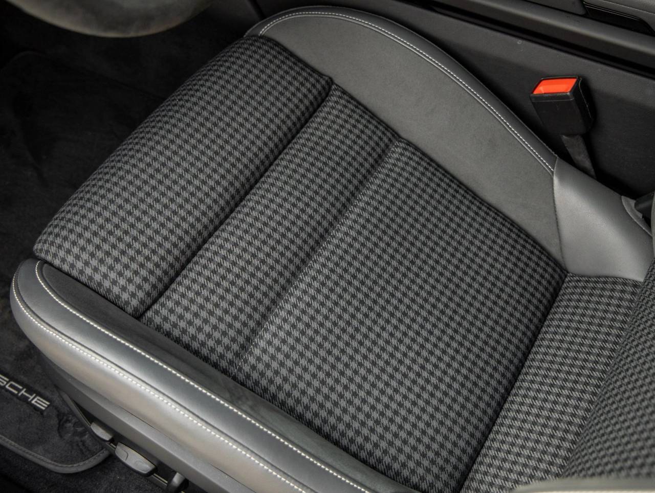 Step inside and the Leather-Free Interior in Slate Grey with Pepita Seat Centers greets you, exuding an air of luxury that only Porsche can deliver. Comfort Seats (14-way) with Comfort Memory, Rear 2+1 Seating, Heated Rear Seats, and Ventilated Front Seats ensure all occupants ride in comfort. Porsche Crest on Headrests (Front), Soft Close Doors, and the Passenger Display enhance the sense of exclusivity and driver-focused elegance.