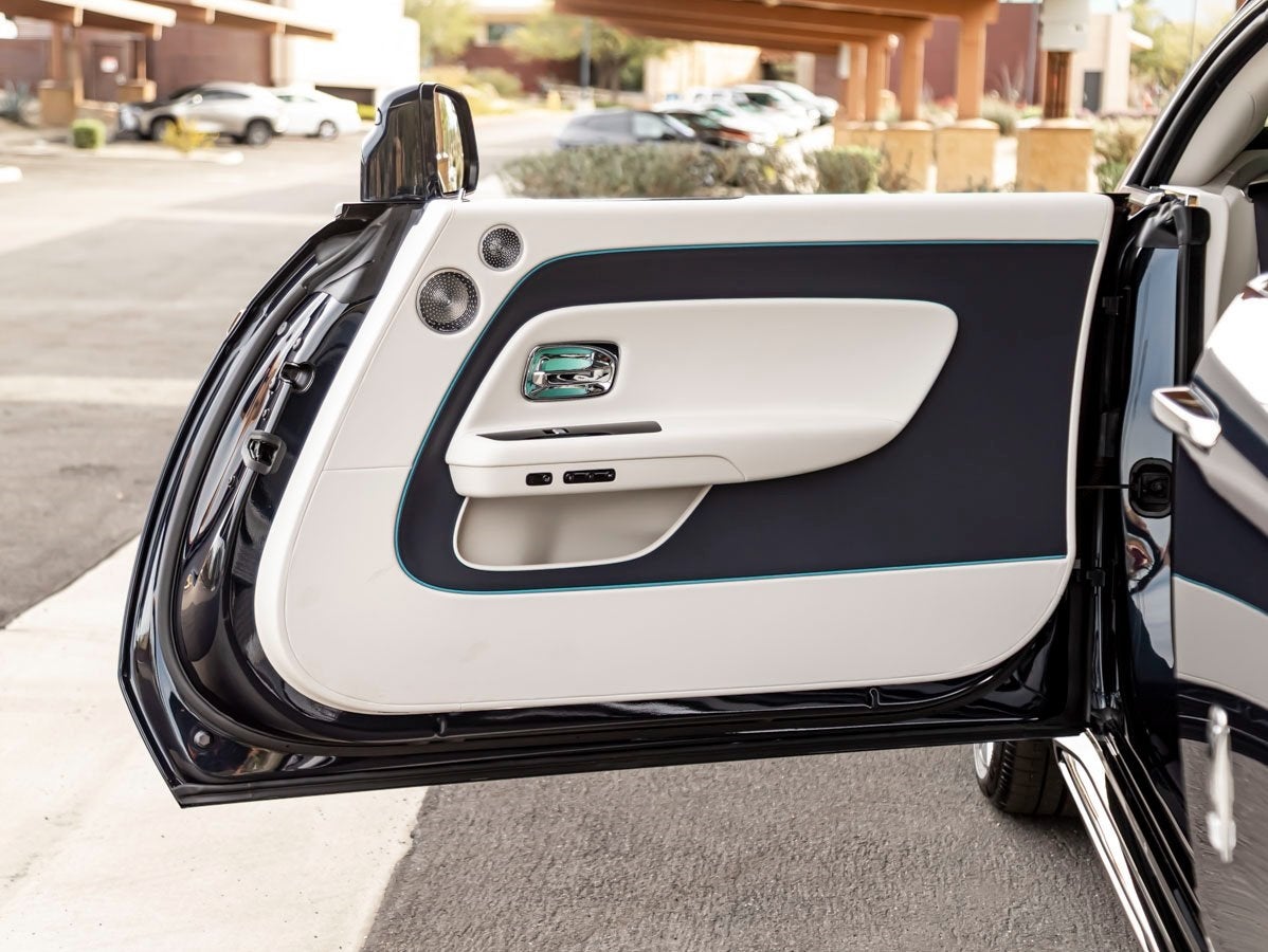 The Spectres commanding silhouette is both graceful and authoritative, embodying Rolls-Royces unmistakable design language in its first all-electric super coupe. The deep Midnight Sapphire finish is accentuated by a refined Fender Coachline, while the Illuminated Grille creates a dramatic and unmistakable first impression.